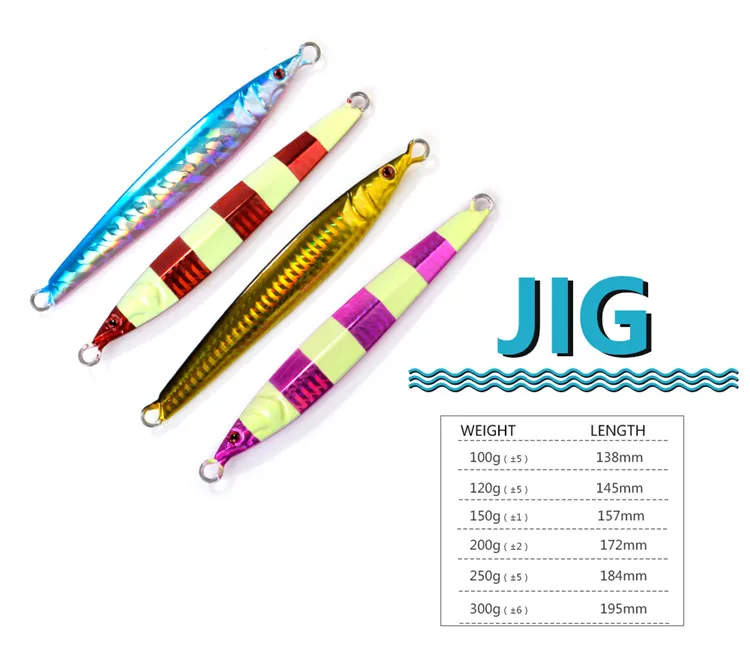 FTK plantilla luminosa señuelo de pesca de mar profundo 100g 120g 150g 200g 250g 300g Metal lento Jigging cebo Artificial duro Señuelos de Pesca