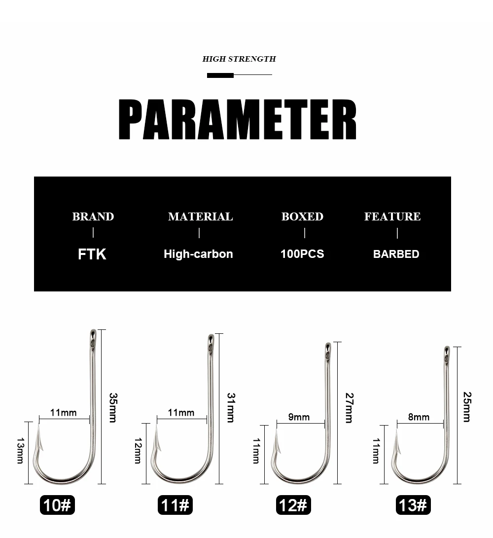 FTK SEA doblada redonda 2335 níquel anzuelo de mar anillado grande 10 # -20 # 100 unids/caja anzuelos de Noruega para aparejos de pesca con anzuelo de carpa Jigging