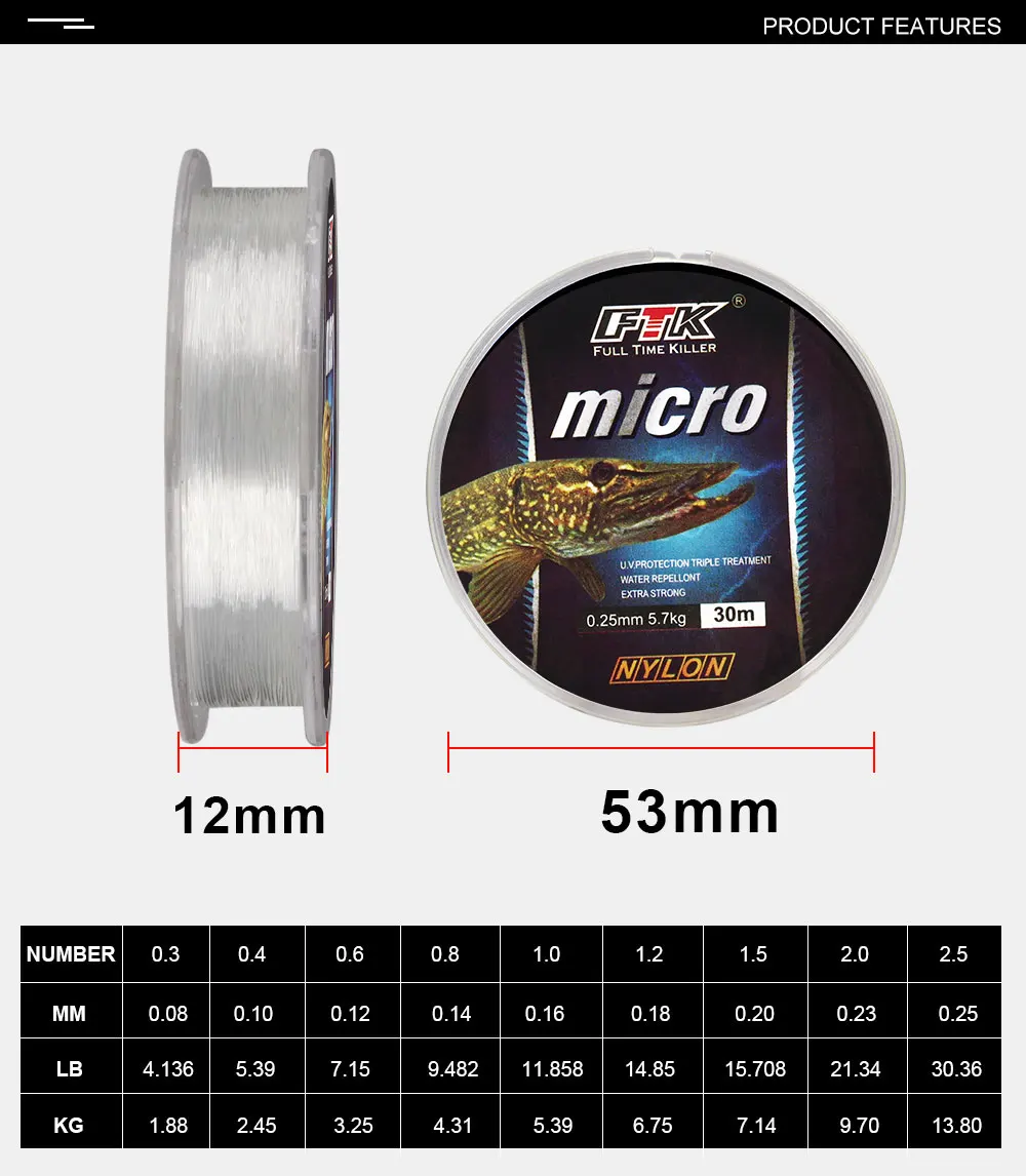 FTK-sedal de pesca en hielo, hilo de pescar de nailon japonés, monofilamento fuerte, alambre de mosca para carpa, accesorios de pesca de invierno, 30M, 2,9-12,5 LB