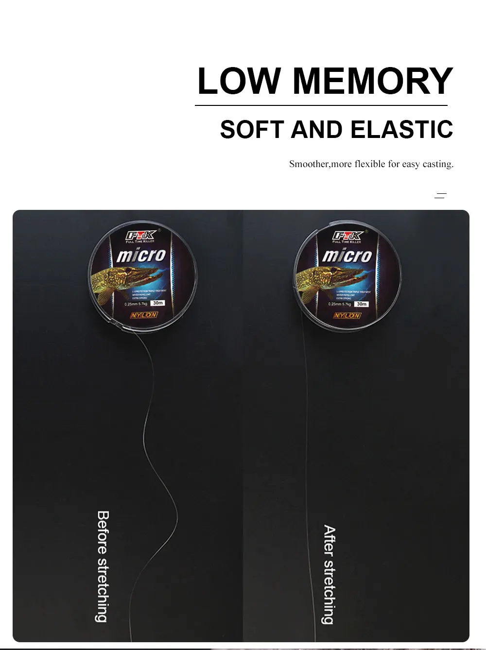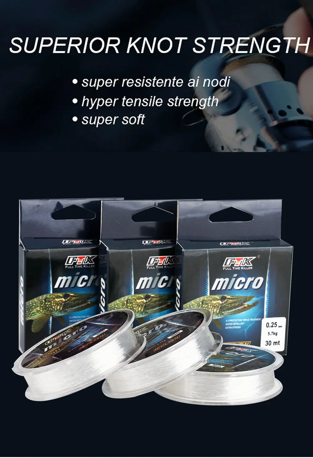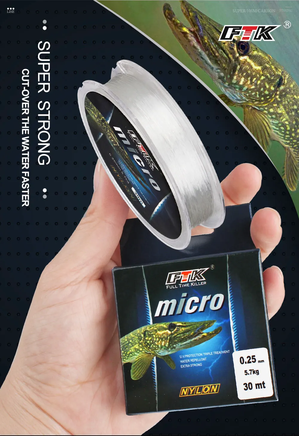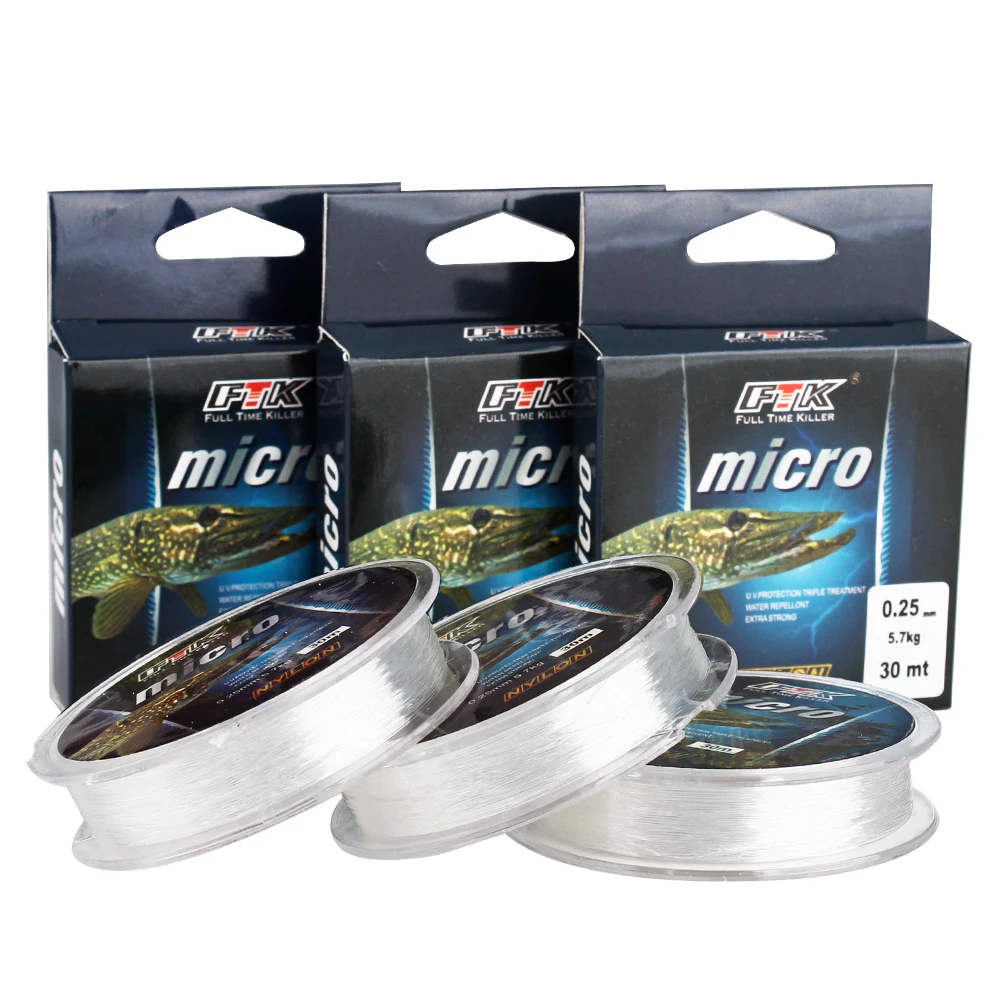 FTK-sedal de pesca en hielo de nailon, 30M, 2.9-12.5LB, 0,08-0,25 MM, línea de pesca transparente para lubina, carpa, accesorios de pesca de invierno