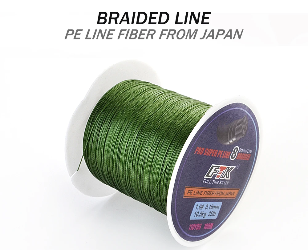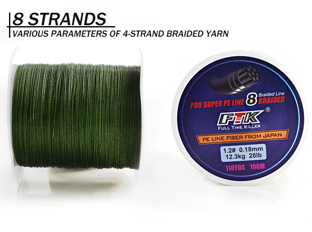 FTK-sedal de pesca de fibra trenzada, 100M, 8 hebras, 110 yardas, multifilamento, 0,16mm-0,40mm, 20LB-90LB