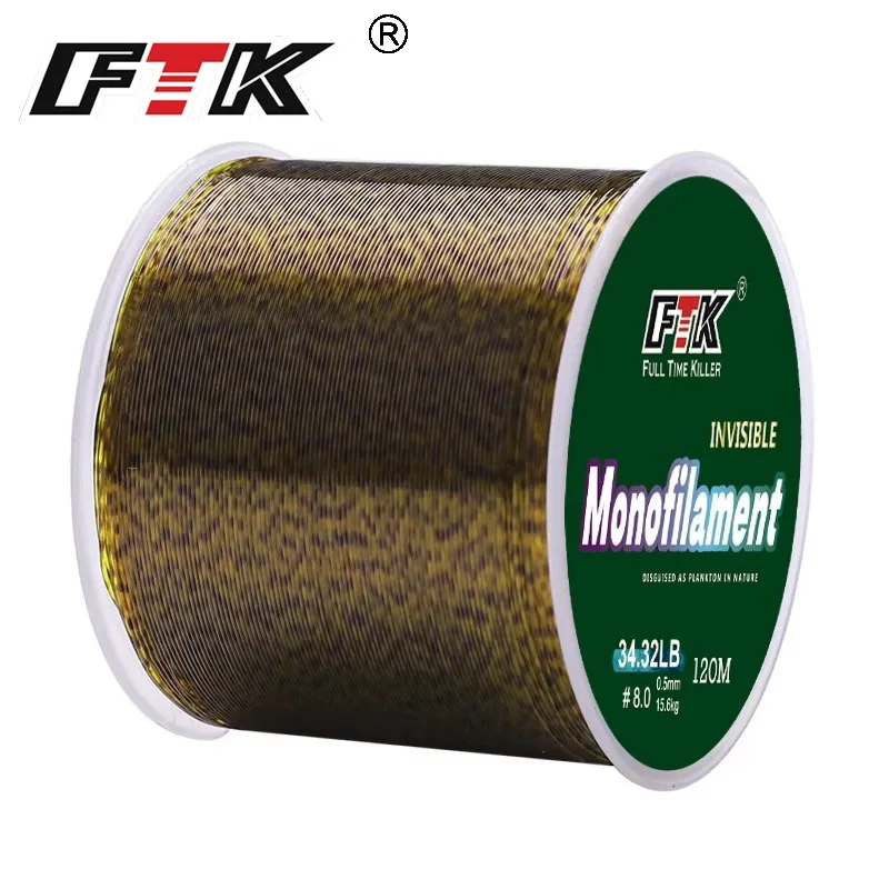 FTK-sedal de pesca de fluorocarbono, 120m, moteado Invisible, 0,2mm-0,6mm, 7,15LB-45LB, línea de revestimiento de fibra de carbono que se hunde, líder Japón