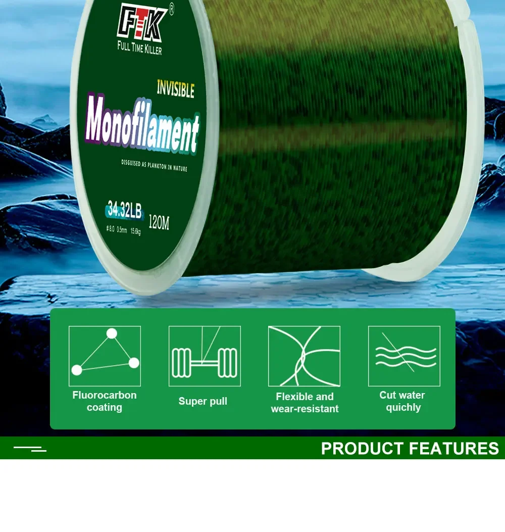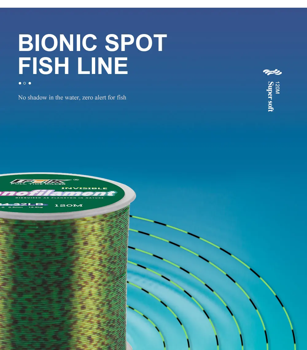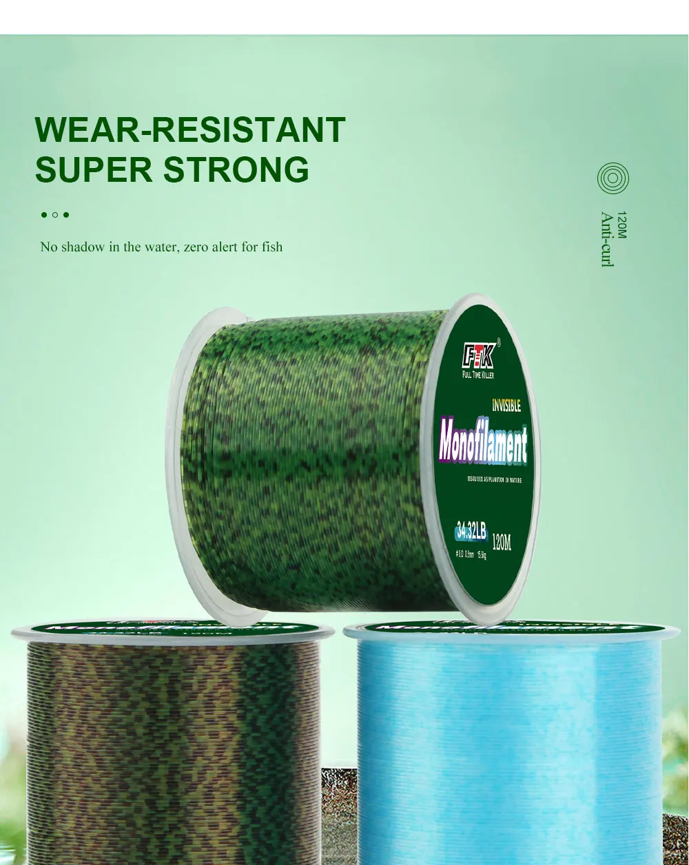 FTK-sedal de pesca Invisible de 120m, 0,20mm-0,50mm, 4,13LB-34,32LB, línea de monofilamento de carpa moteada, línea manchada súper fuerte que se hunde