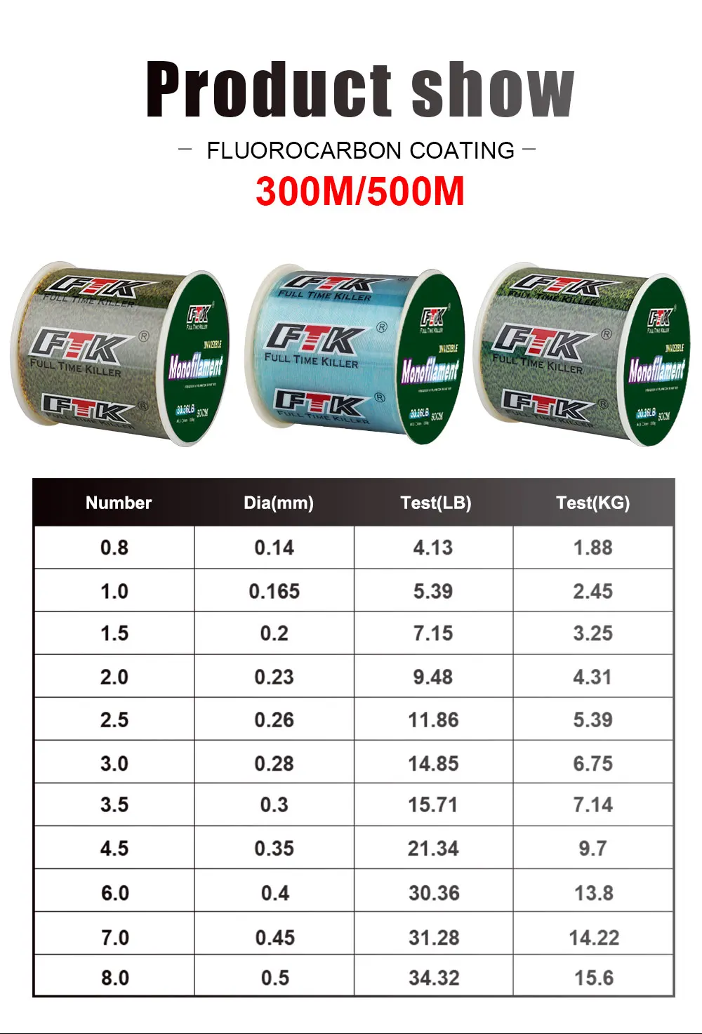 FTK-sedal de pesca Invisible, hilo de monofilamento de carpa moteado, superfuerte, hundimiento, 500m, 0,20mm-0,50mm, 4.13LB-34.32LB