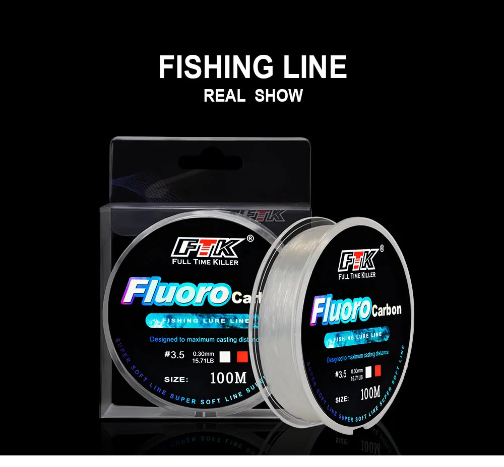 FTK-sedal de Señuelos de Pesca de fluorocarbono, 100m, 4,13-34,32LB, líder de fibra de carbono, línea de Pesca con mosca súper suave