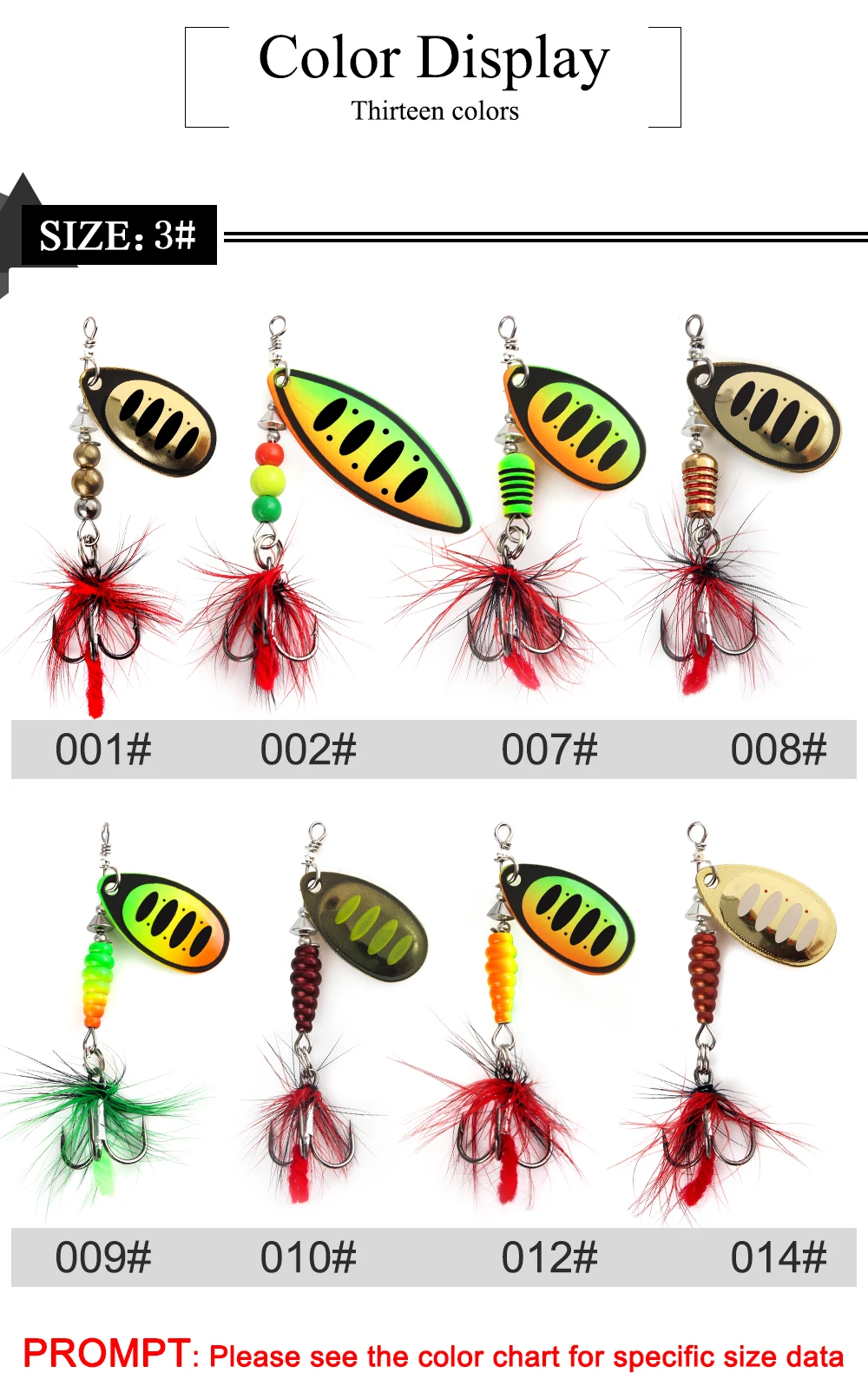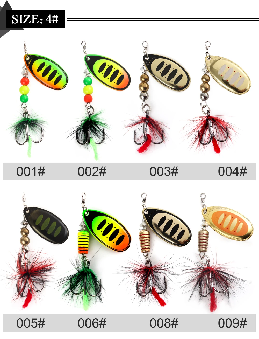 FTK-señuelo giratorio para pesca, cebo duro, cuchara de Metal, anzuelo triple con pluma, aparejos de pesca