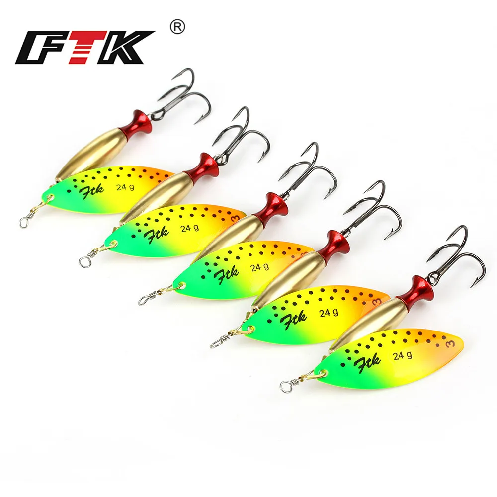 FTK-señuelo largo de pesca, anzuelo giratorio, cuchara con Mustad, anzuelos agudos, cebo duro de lubina, 1 unidad, tamaño: 2 18g/:3 24g