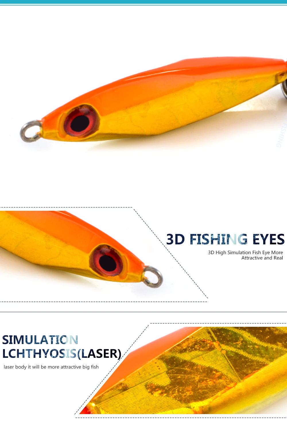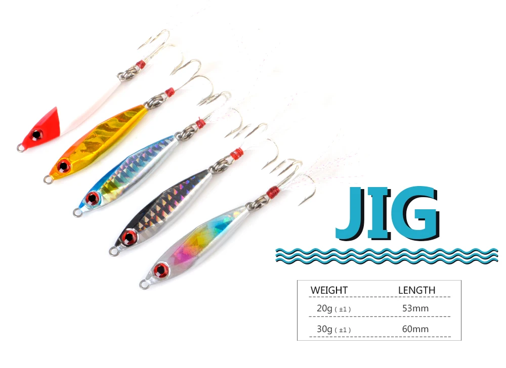 FTK-señuelo de Metal para pesca en el mar, anzuelo de 20g, 30g, ojos 3D, 5,3 cm, 6cm, anzuelo triple