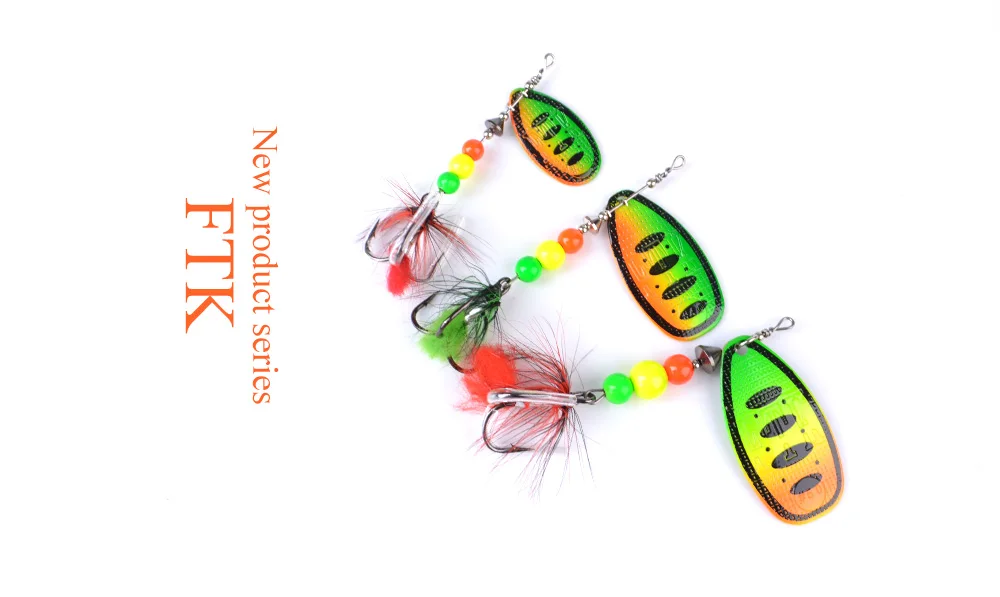 FTK-señuelo de pesca con cebo giratorio, 8g, 13g, 19g, cuchara de Metal, cebo duro con anzuelos triples de plumas, Wobblers, aparejos de Lucio
