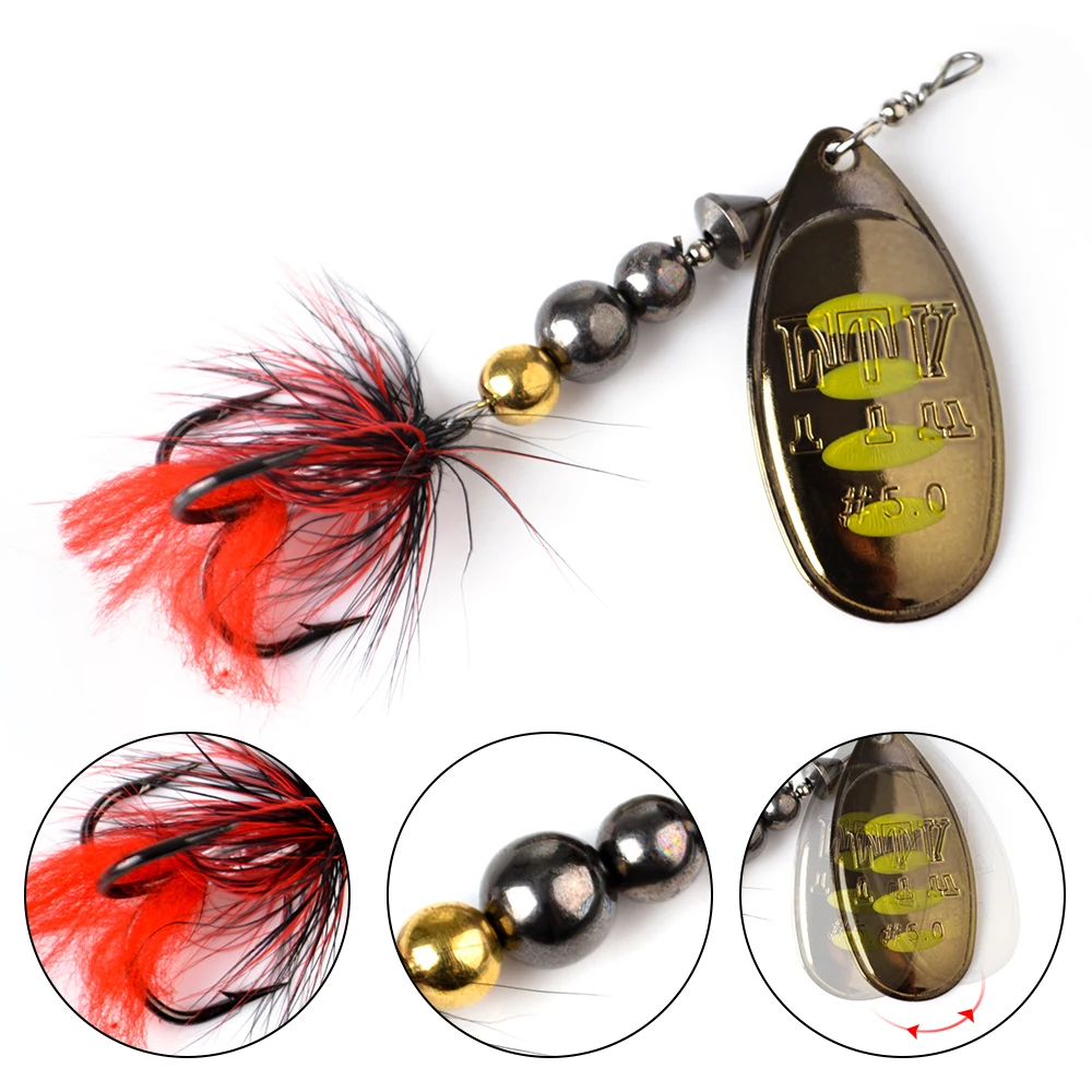 FTK-señuelo de pesca con cuchara giratoria, 1 unidad, 12g, 18g, pluma, señuelo de agua salada, accesorios, gancho triple, señuelo duro de Metal, aparejos Wobblers