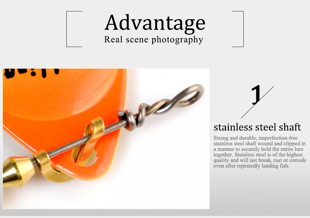 El spinner tiene un gancho un poco grande. El embalaje también podría ser un poco mejor. Son solo bolsas. Aún no lo he probado.