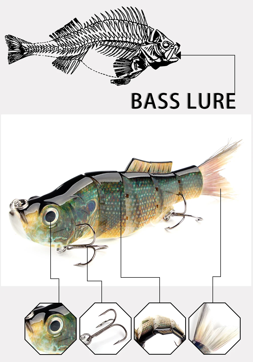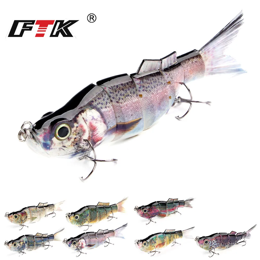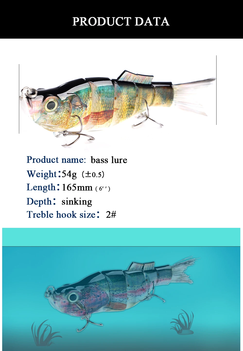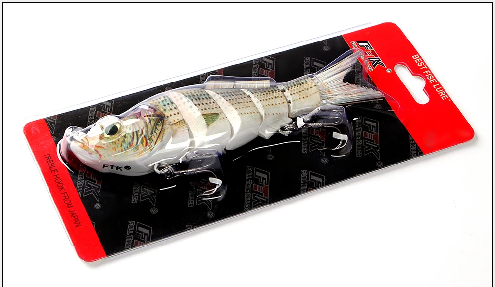 FTK-señuelo de pesca duro multiarticulado, 54g, 16,5 cm, Minnow, ojos 3D, Wobblers, cebo Artificial de 5 segmentos con anzuelo triple, Swimbait Bass