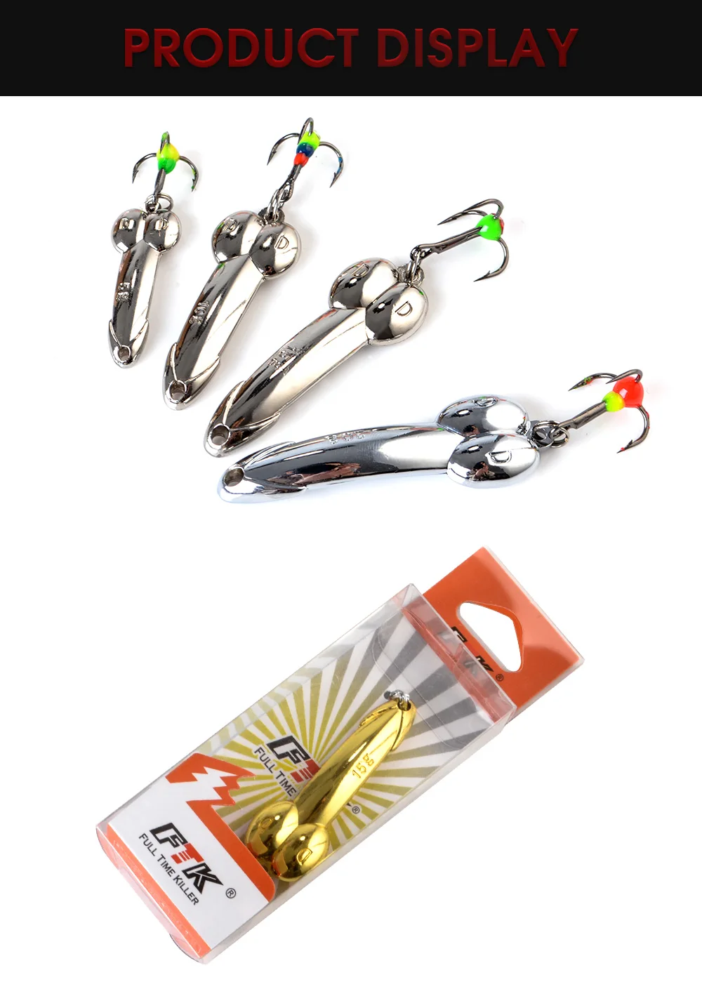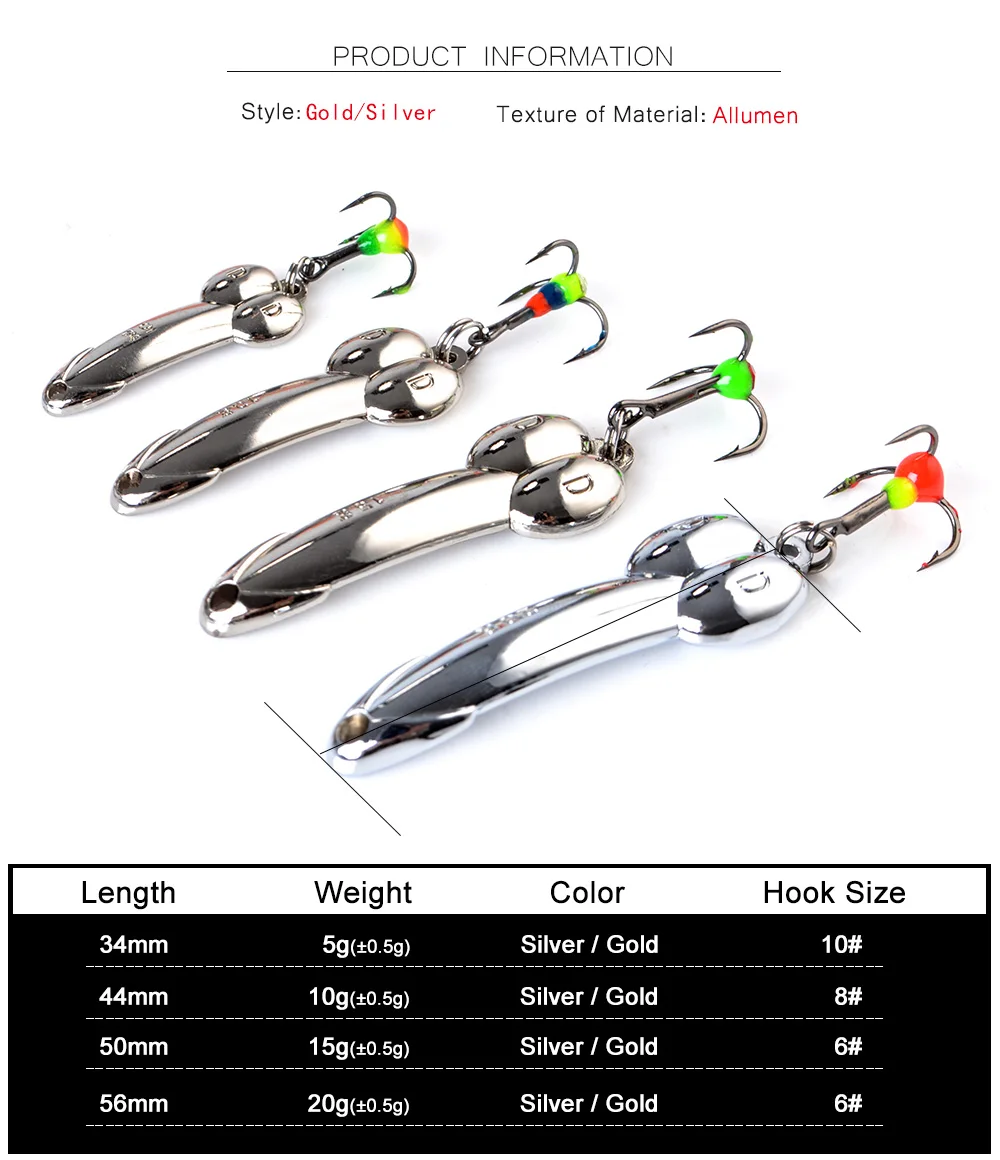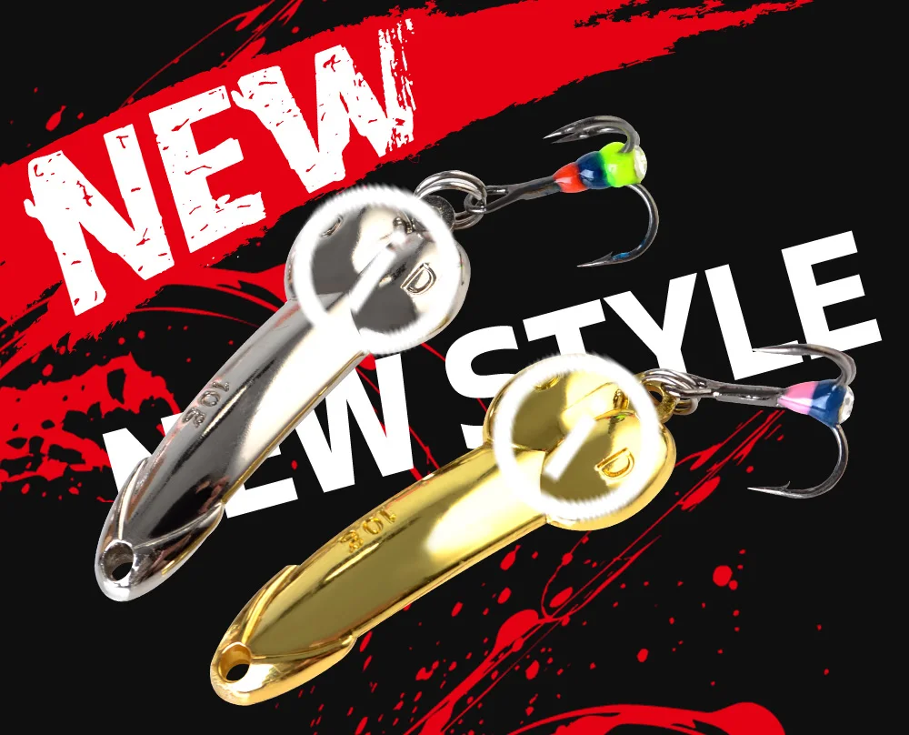 FTK-señuelo para pesca en hielo, 1 unidad, 15g, cuchara dorada y plateada, cebos duros, señuelo para lubina con anzuelo triple para trucha y Lucio