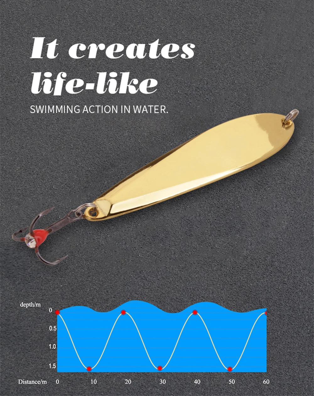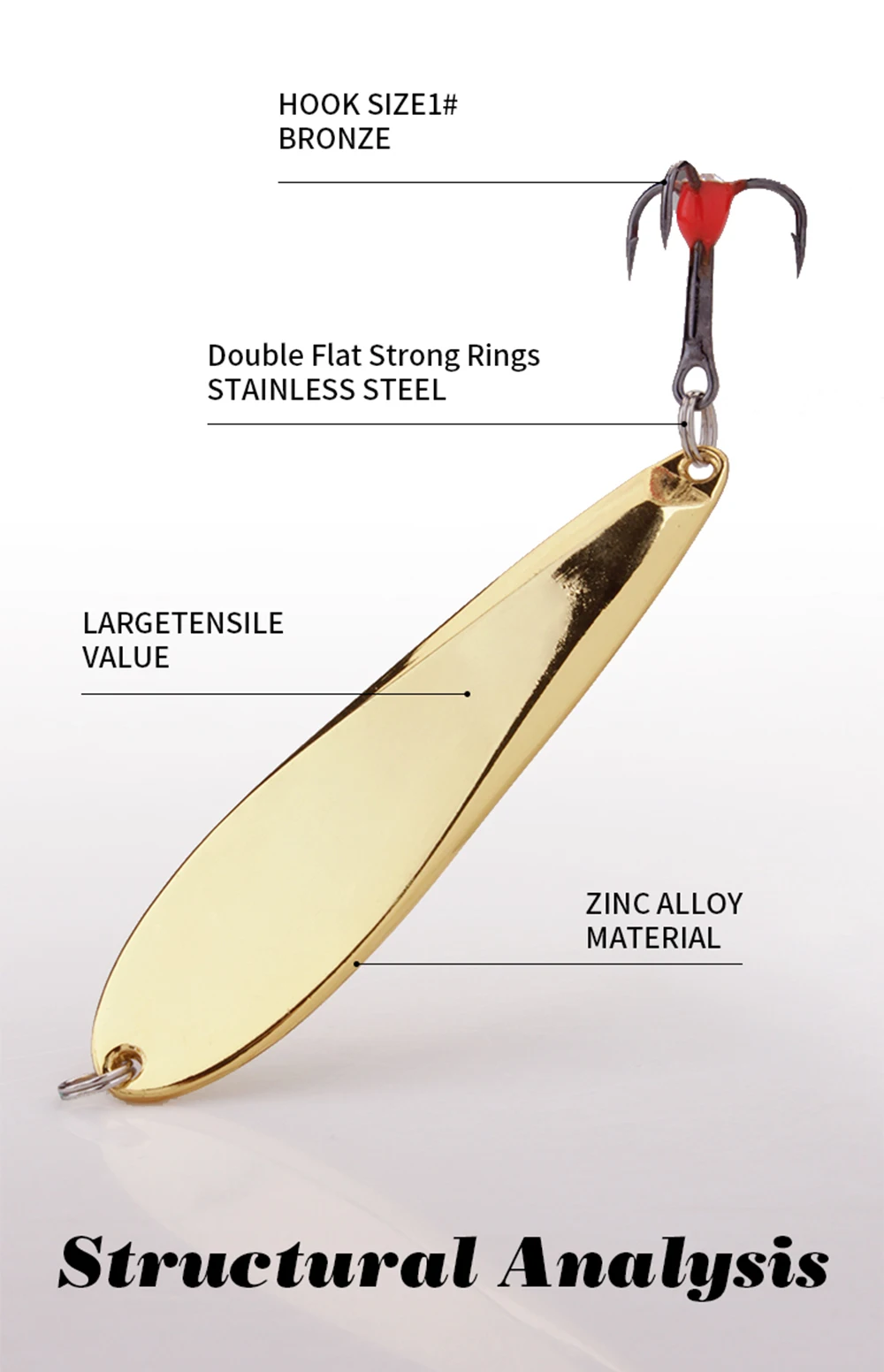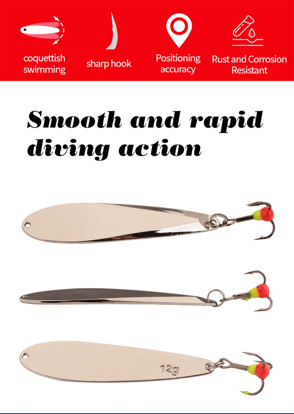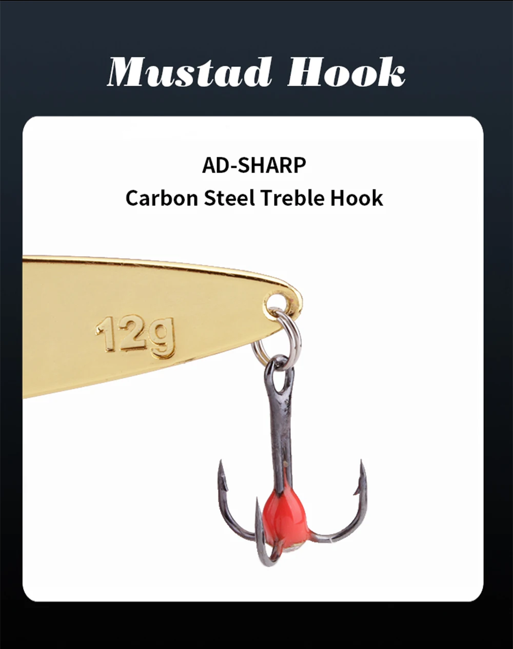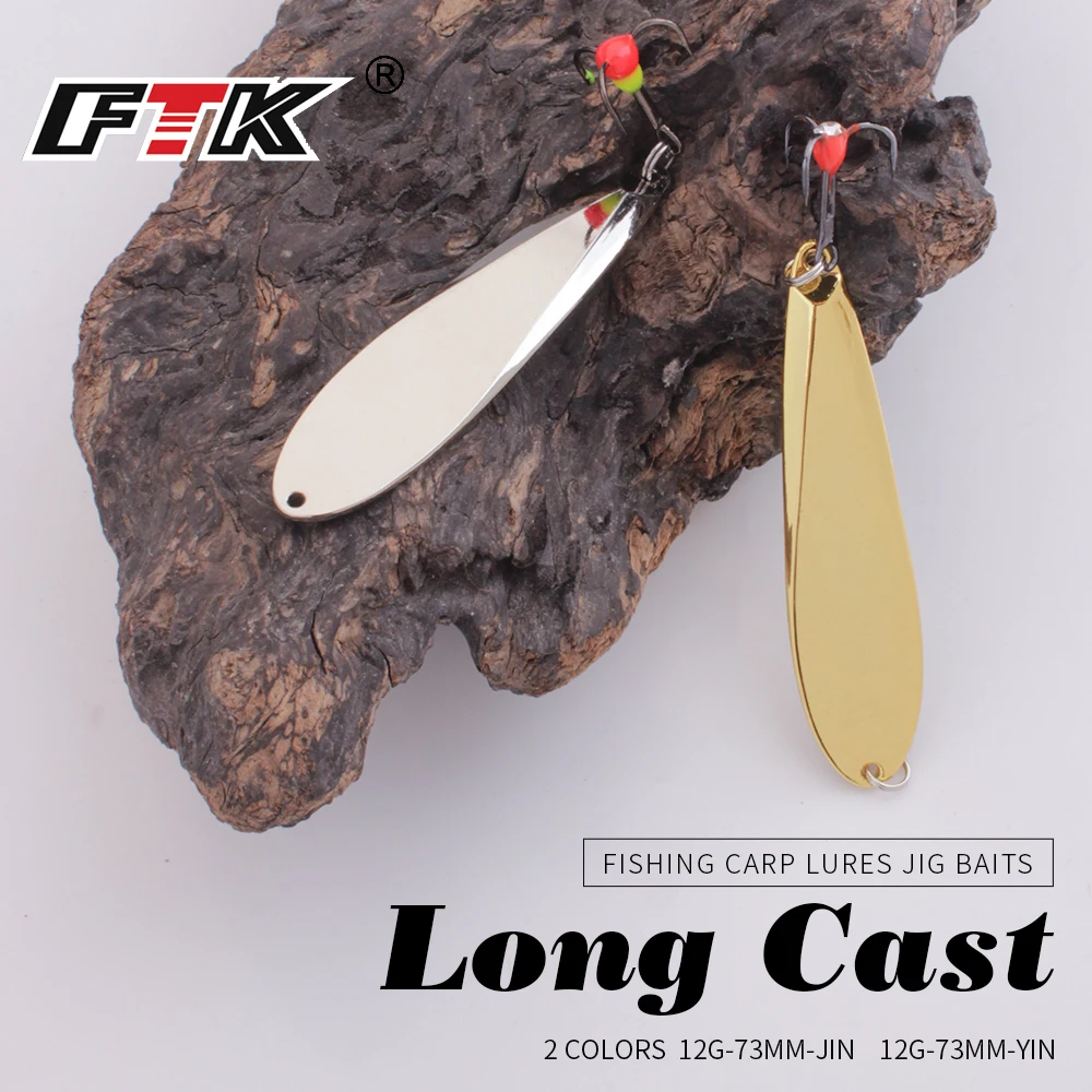 FTK-señuelo de pesca en hielo de 12g y 73mm de largo, anzuelo de Metal dorado, Wobblers, cebo Artificial, cuchara giratoria para Lucio de invierno