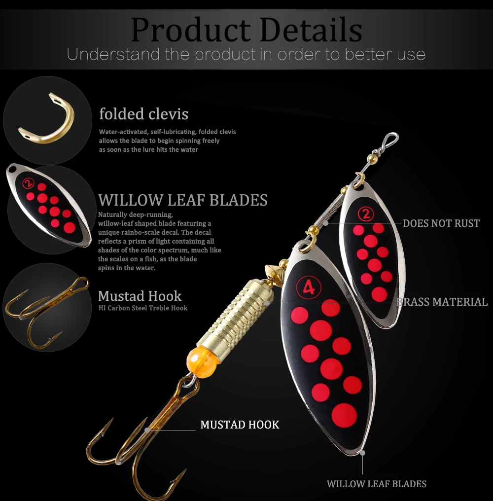 FTK-señuelo de pesca de fundición larga, cebo giratorio doble, 20g, 1 #, anzuelo, aparejos de pesca, señuelos artificiales de Metal duro para pesca de Lucio