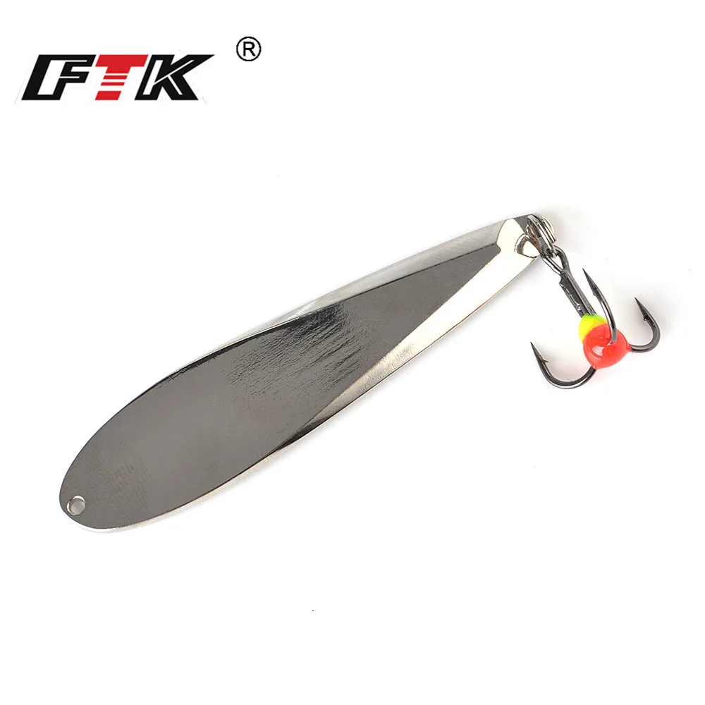 FTK-señuelo para pesca en hielo, 73mm/12g, cuchara plateada para invierno, cebos duros, señuelo para lubina con anzuelo triple para trucha y Lucio, 1 ud.