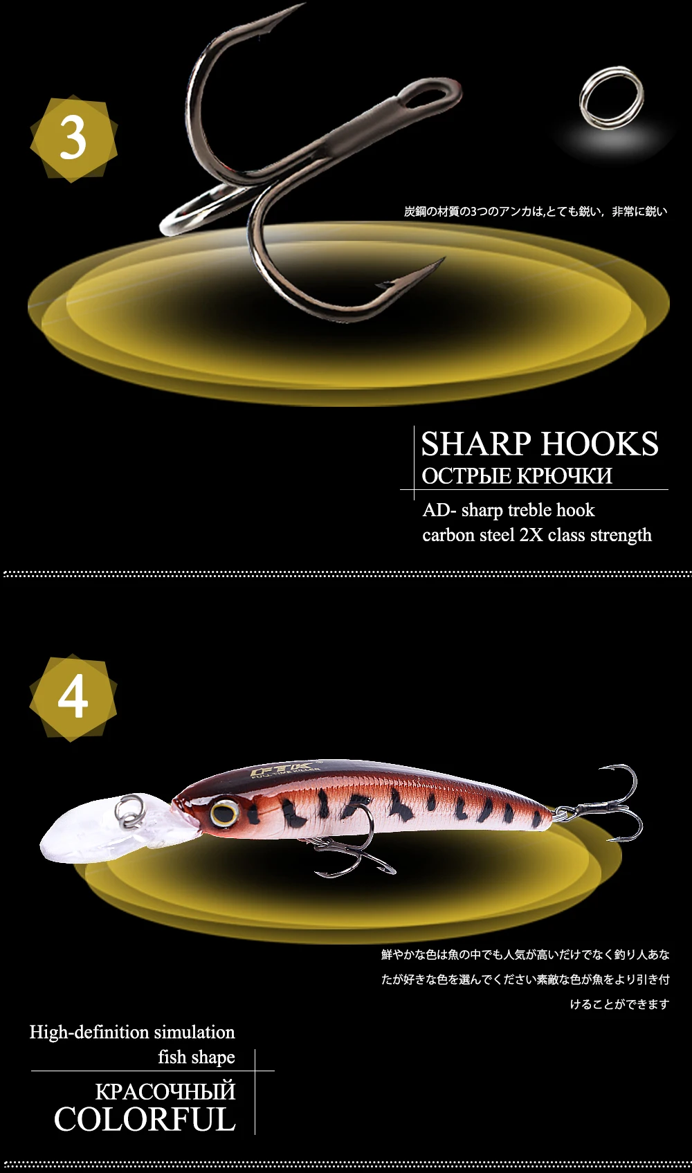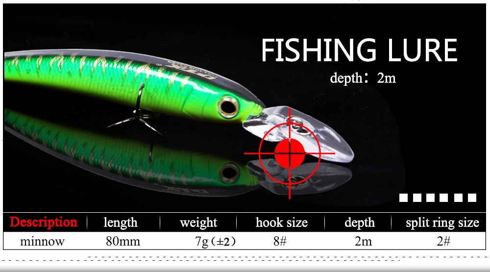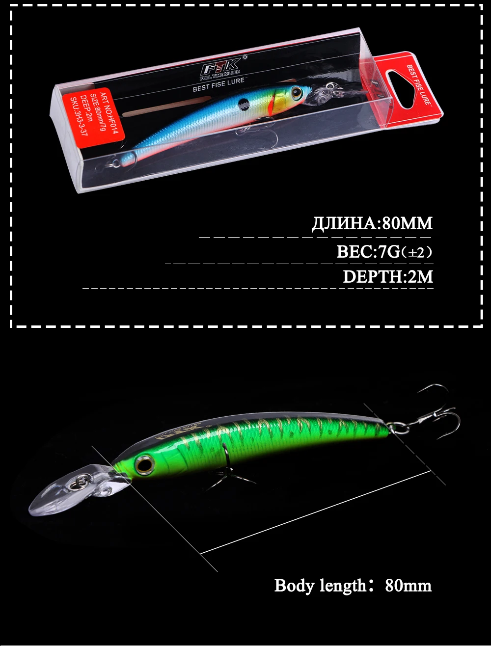 FTK-señuelo de pesca de lubina de agua salada, cebos duros artificiales Wobblers para Lucio Crankbait trucha, aparejos de profundidad de 2m, 80mm, 7g