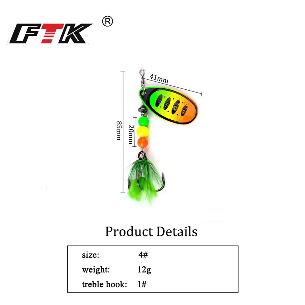 FTK-señuelo de pesca de Metal, cebo giratorio con anzuelo triple, giratorio de lentejuelas, cebo Artificial duro para Lucio, 12g