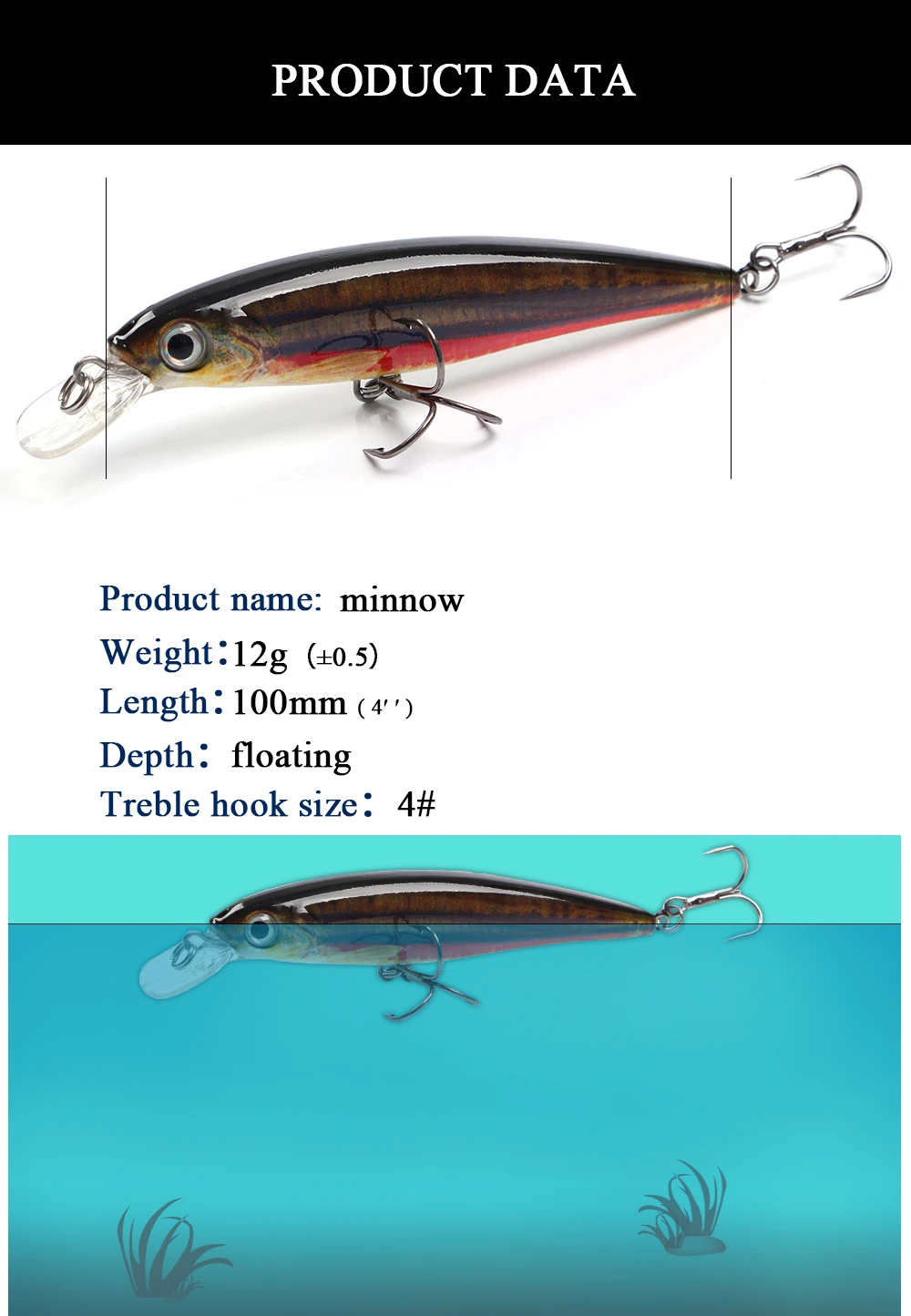FTK-señuelo de pesca Minnow, 100mm/12g, señuelo flotante para lubina, cebo Artificial duro, Wobblers de carpa, pesca Crankbai, accesorios de pesca