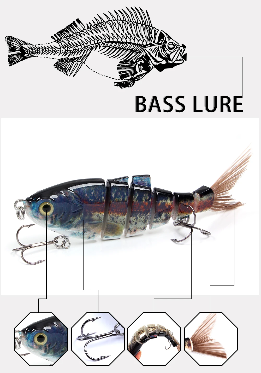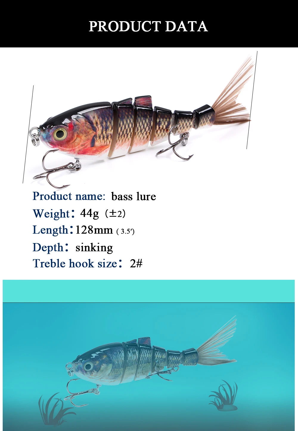 FTK-señuelo de pesca multiarticulado, 44g, pececillo que se hunde, 12,8 cm, 6 segmentos, Crankbaits para lubina, cebo duro, Wobblers, Jerkbait