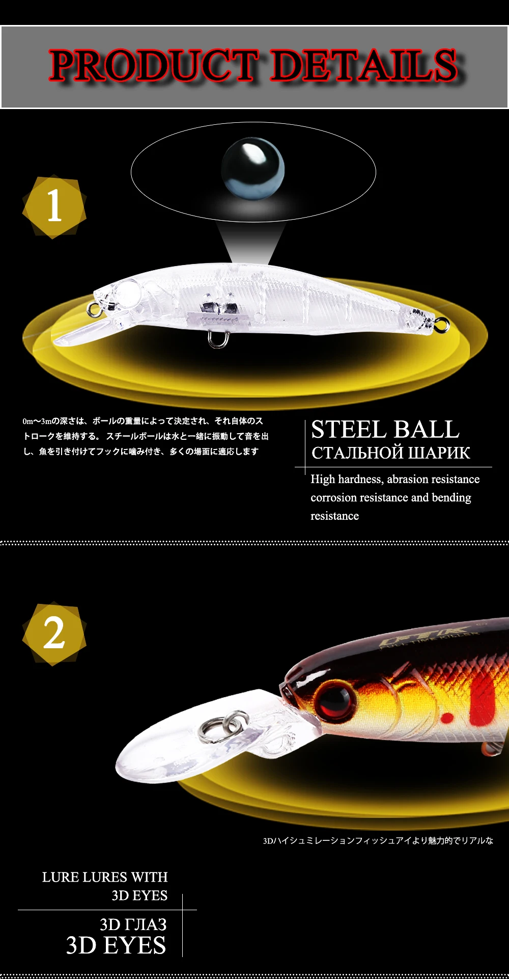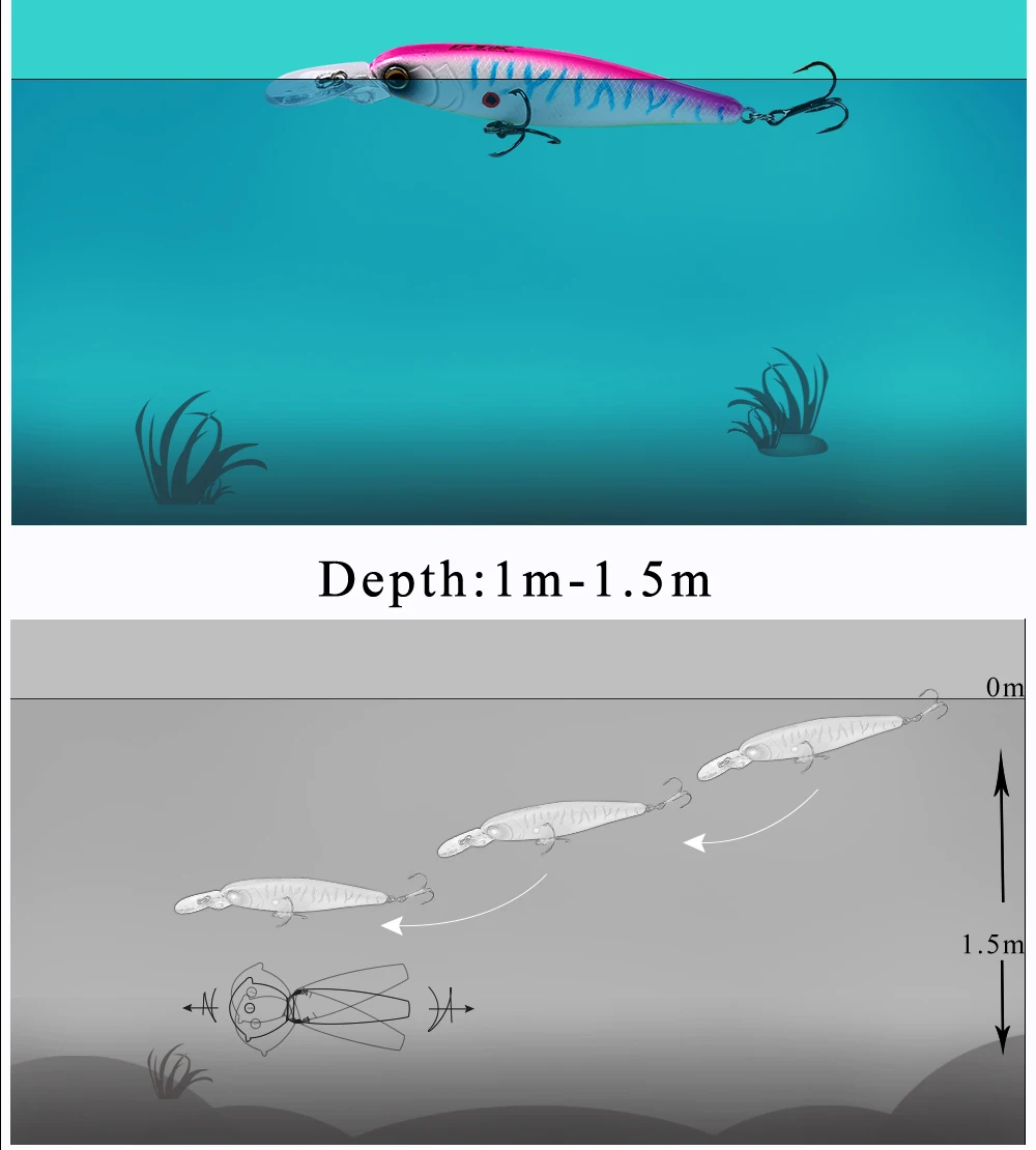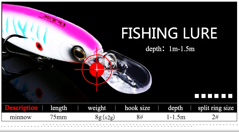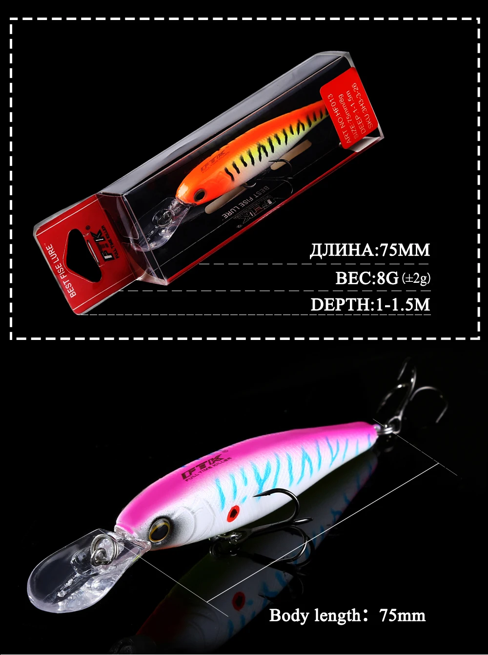 FTK-señuelo de pesca de pececillos, cebo Artificial duro, ojos 3D, hundimiento, lubina con anzuelos triples, Wobblers, Lucio, 75mm, 8g