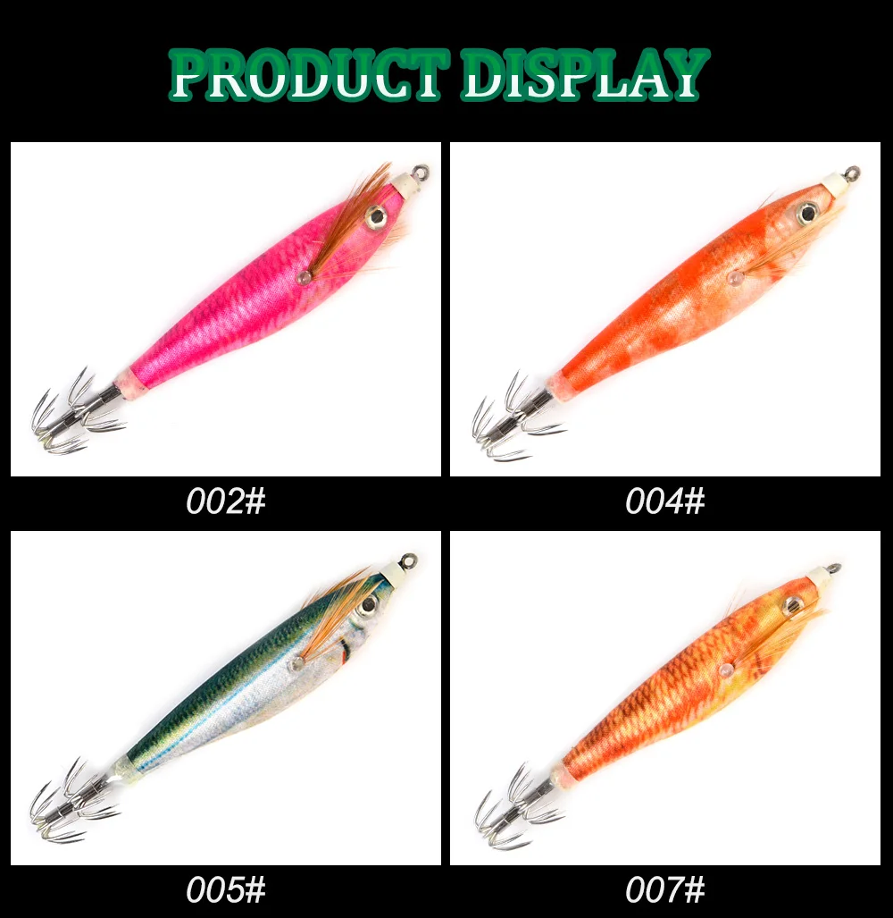 FTK-señuelo de pesca con plantilla de calamar luminosa, ojos 3D, 10g, 80mm, pulpo, sepia, camarón, anzuelo de calamar, cebos artificiales duros, pesca en el mar