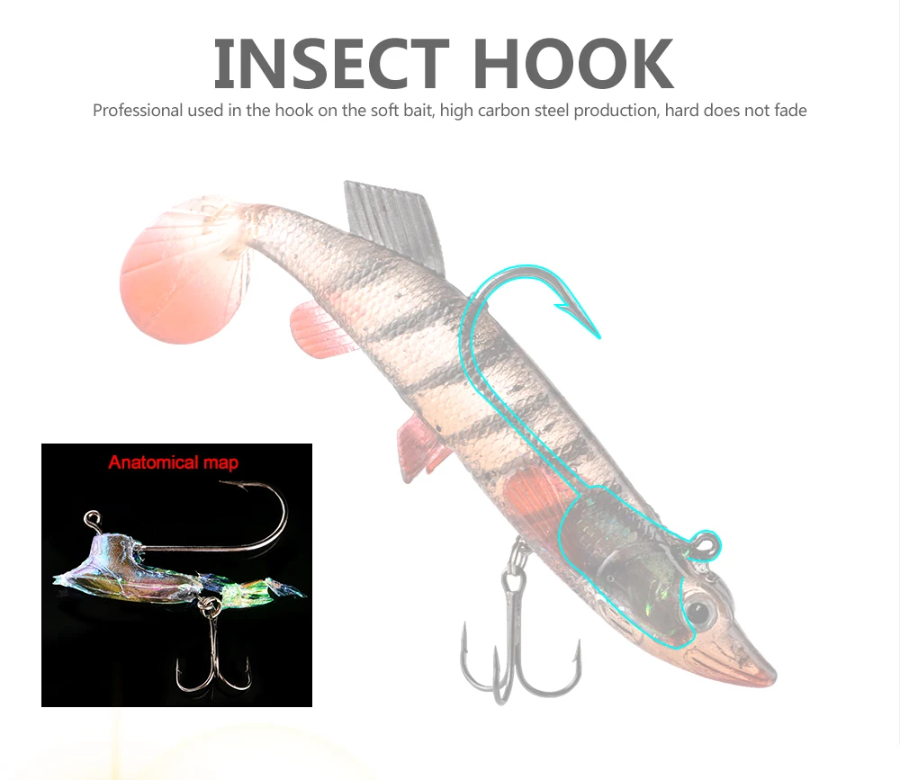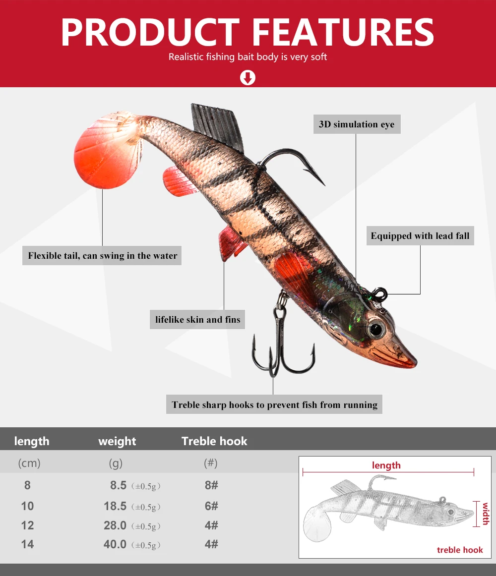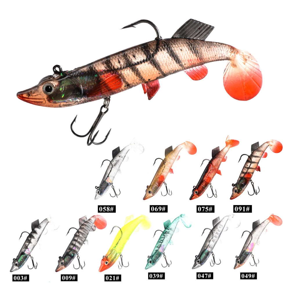 FTK-señuelo de pesca suave con ojos 3D, cebos de pesca con cola en T, anzuelo triple, cebo Artificial, plantilla para pesca, 8g/18g/28g/40g