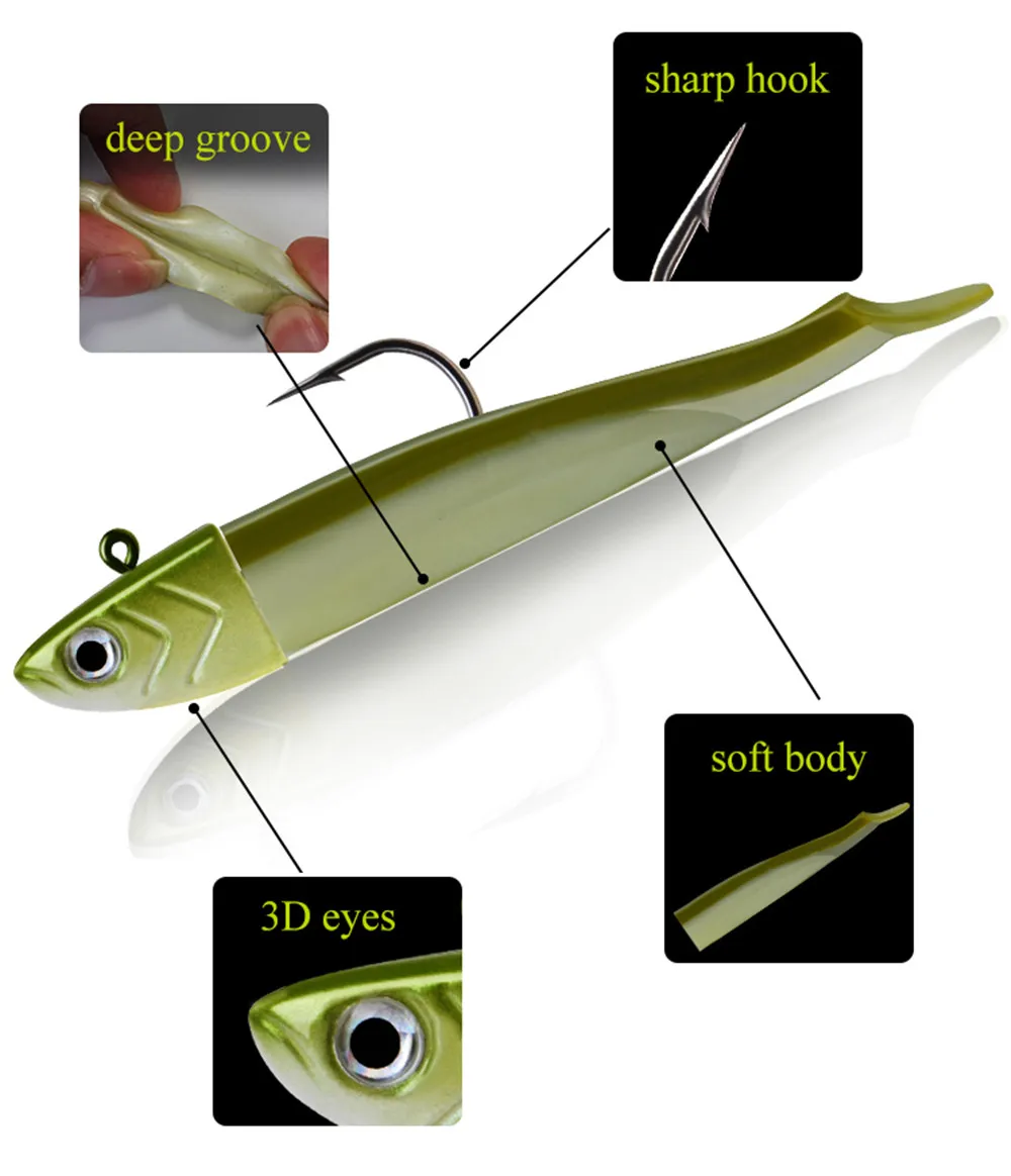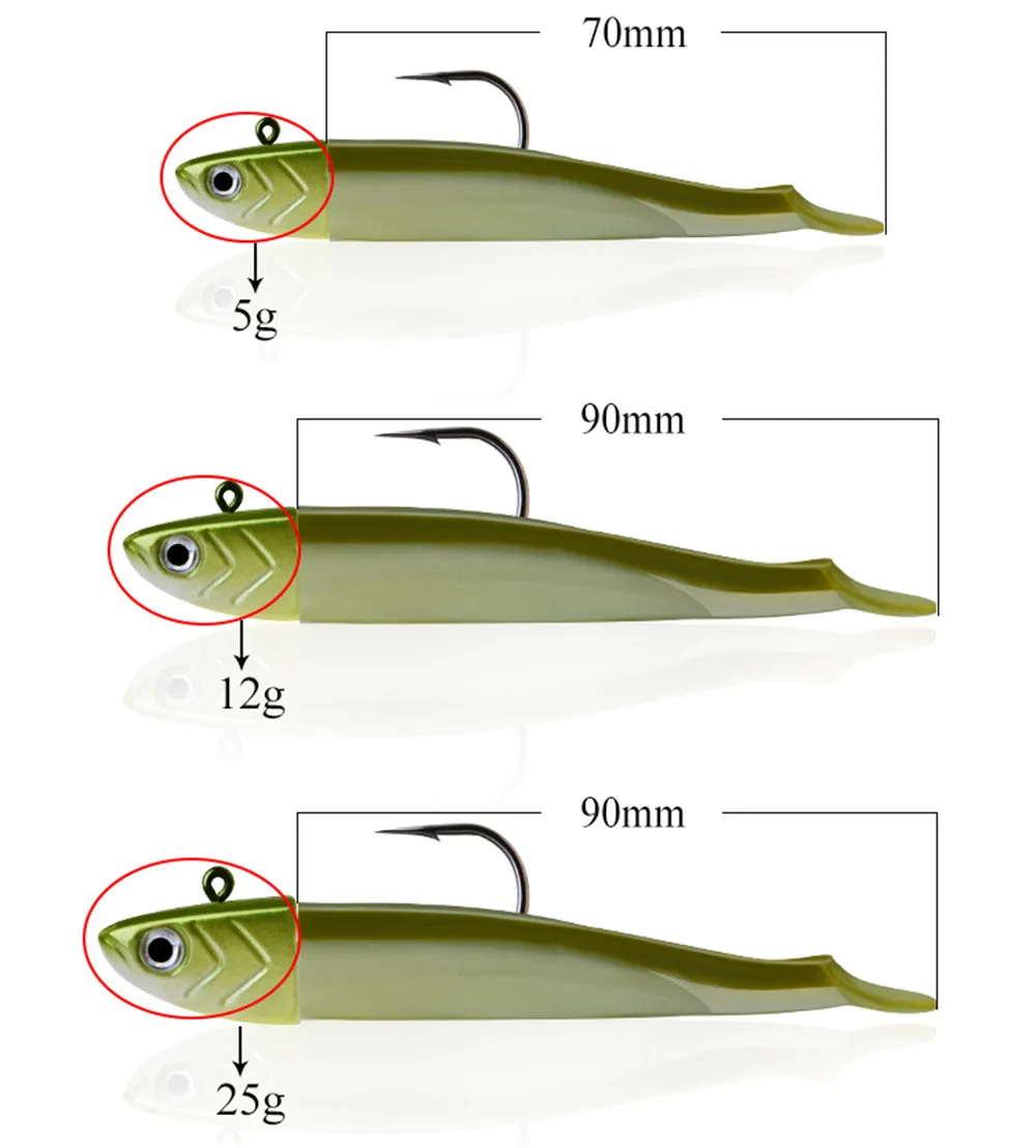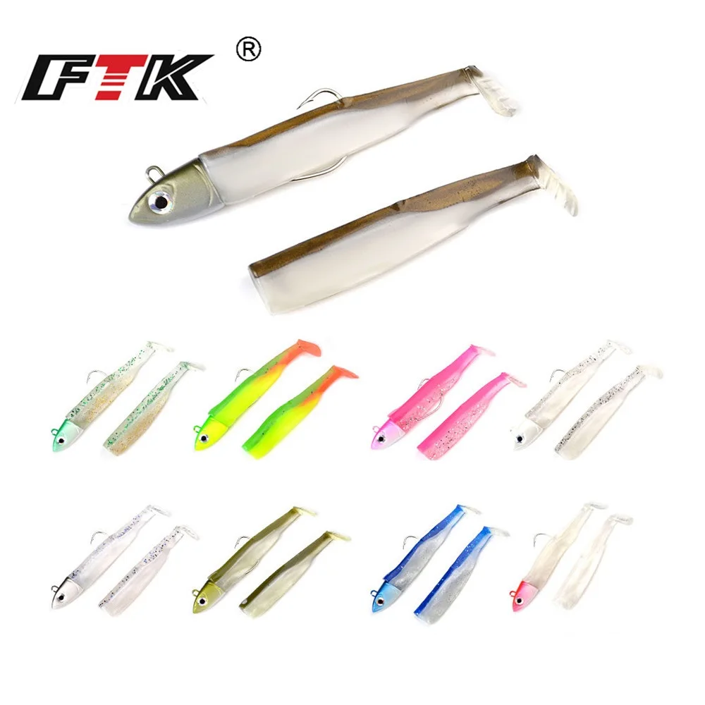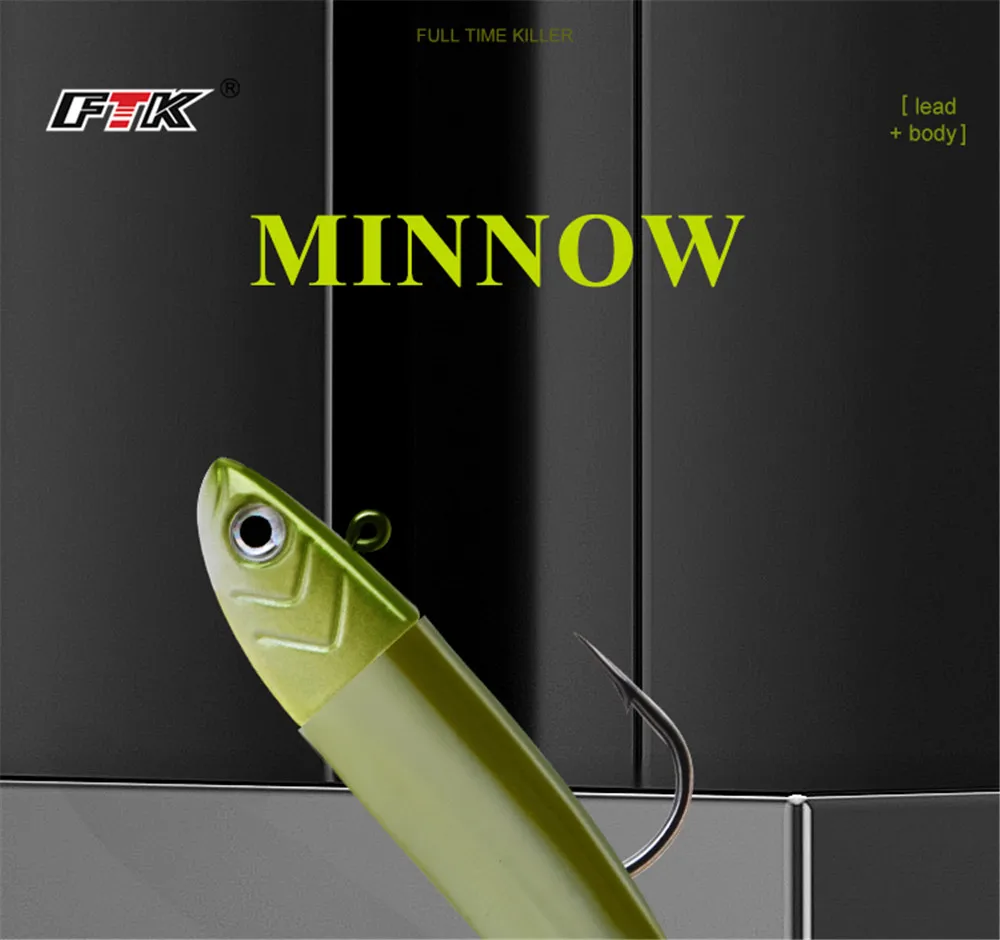 FTK-señuelo suave con cabeza de anzuelo, cebo Artificial, pececillo negro, agua salada, lubina, cebo de pesca Swimbait para accesorios de pesca, 5-25g