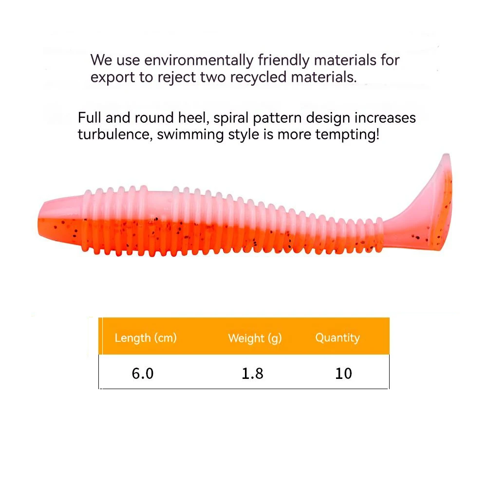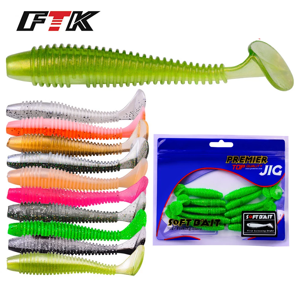 FTK-SEÑUELOS DE PESCA DE 10 piezas, 6cm, cebos artificiales de silicona suave, aparejos de pesca, cebo de agua dulce, Wobbler, paleta de lubina, herramienta de pesca