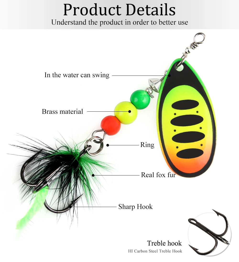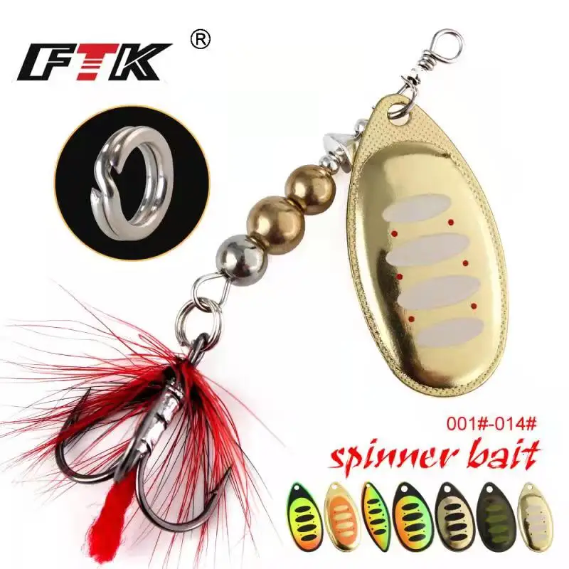 FTK Super 7g/8g/9g/11g/15g/17,5g cebos de cuchara de pesca con monofilamento Material de latón gancho afilado pluma ovalada hojas de sauce