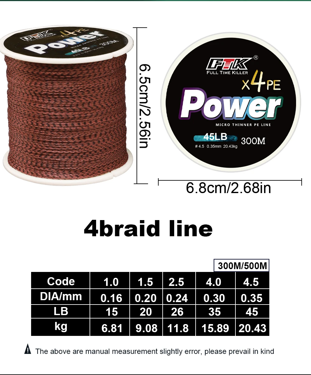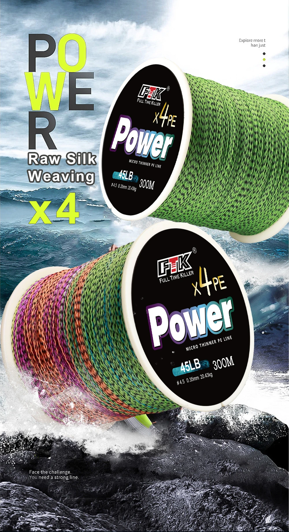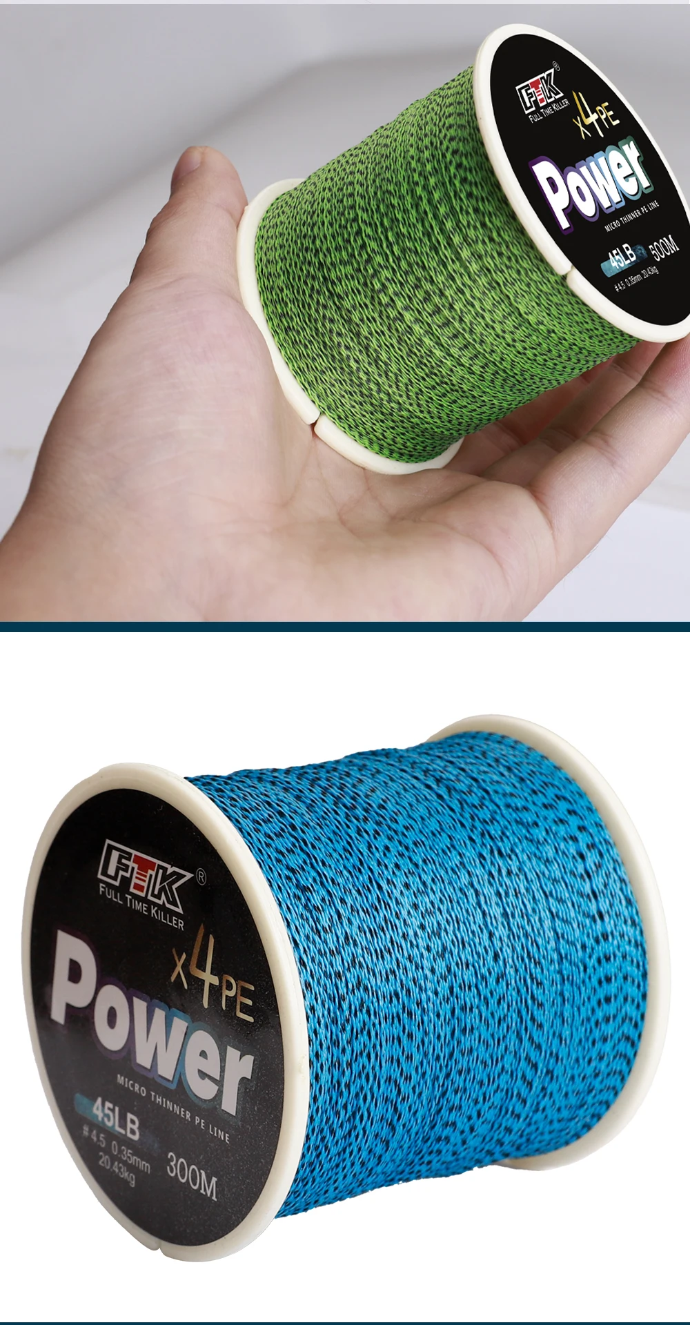 FTK X4 línea de pesca trenzada de 4 hebras súper fuerte 0,16-0,35mm 300M/500M 6,81-20.46Lb aparejos de pesca de línea de PE multifilamento