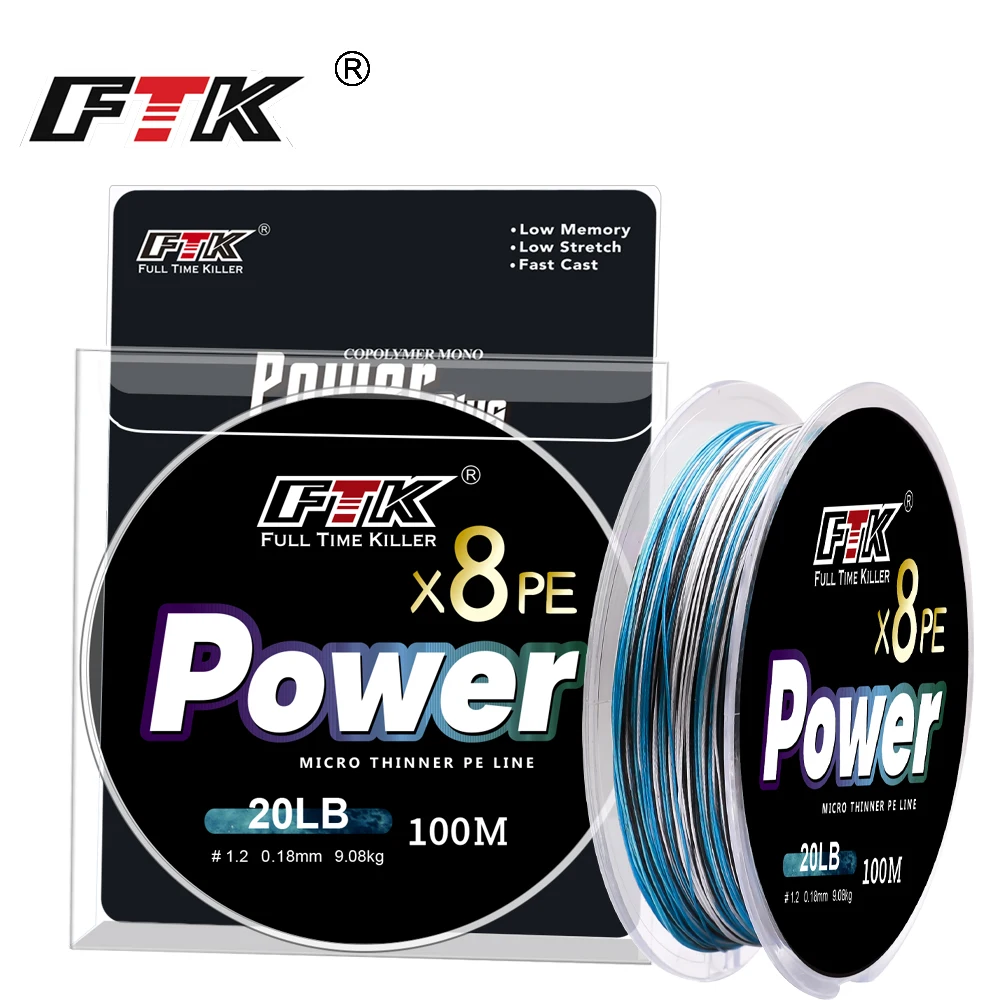FTK X4/X8 línea de pesca trenzada 100m 13-50lb multifilamento PE línea trenzada cable redecilla para Lucio accesorios de sedal de pesca de lubina