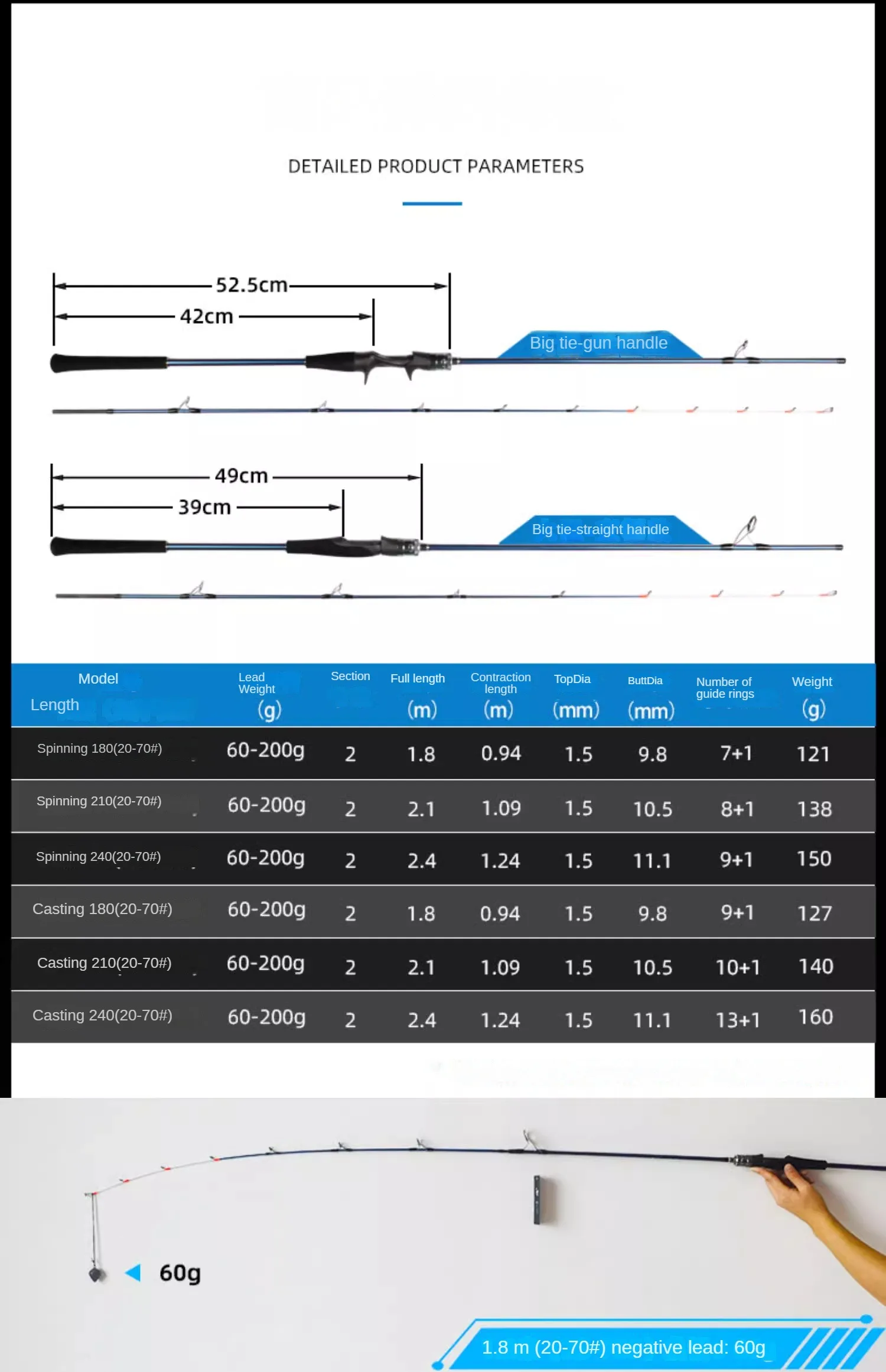 Fuji-anillo guía para barco en alta mar, caña de señuelo de pesca 20-70 #, varilla giratoria de fundición de Punta sólida, 1,8 m, 2,2 m, 2,4 m, peso de Jigging 60-200g