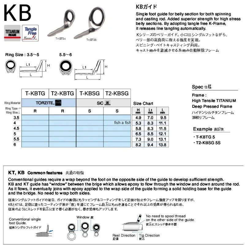 Fuji KB guía de una sola pierna de titanio Torzite, guías TKBTG