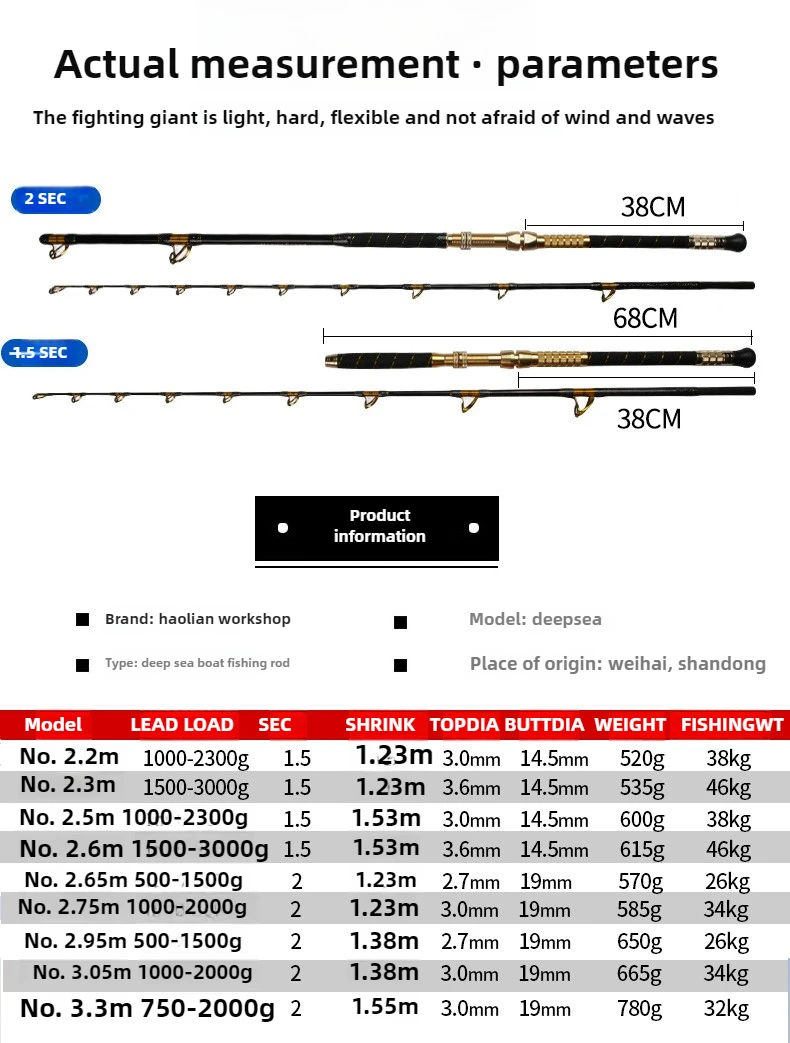 FUJI Super duro barco de aguas profundas carrete eléctrico Jigging caña cebo 1500-3000g alto carbono Deap océano caña de pescar 1,8 m2,1 m2,4 m2,7 m3 m