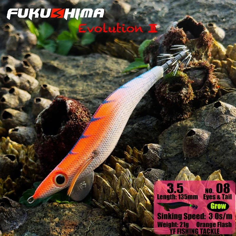 3.Fukushima lll se ha mejorado y ajustado a un ángulo de 25 a 30 grados. Cuando la plantilla de calamar se eleve, "saltará bruscamente como un camarón" y saltará hacia arriba, "tal como quieres que se sienta". Conéctelo a la línea y la caña, intente ajustarse a la sensación constante de la marea de una manera neutral mientras se hunde.