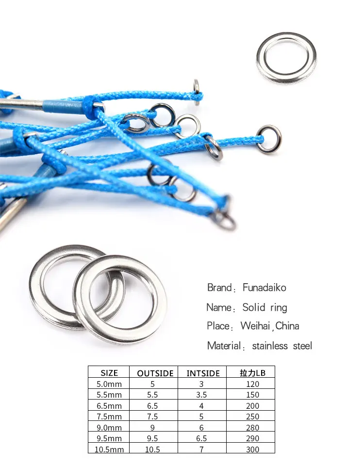 FUNADAIKO, anillo sólido de pesca de acero inoxidable, anillos tóricos, pesca plana, nudo giratorio, señuelo, pesca, anillos sólidos, accesorios