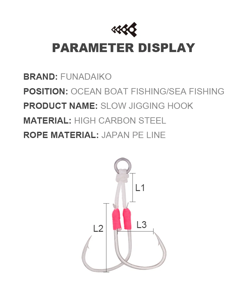 FUNADAIKO-anzuelos de pesca de doble plantilla, anzuelos de pesca, Jigging lento, anzuelos de pesca, anzuelos de doble plantilla