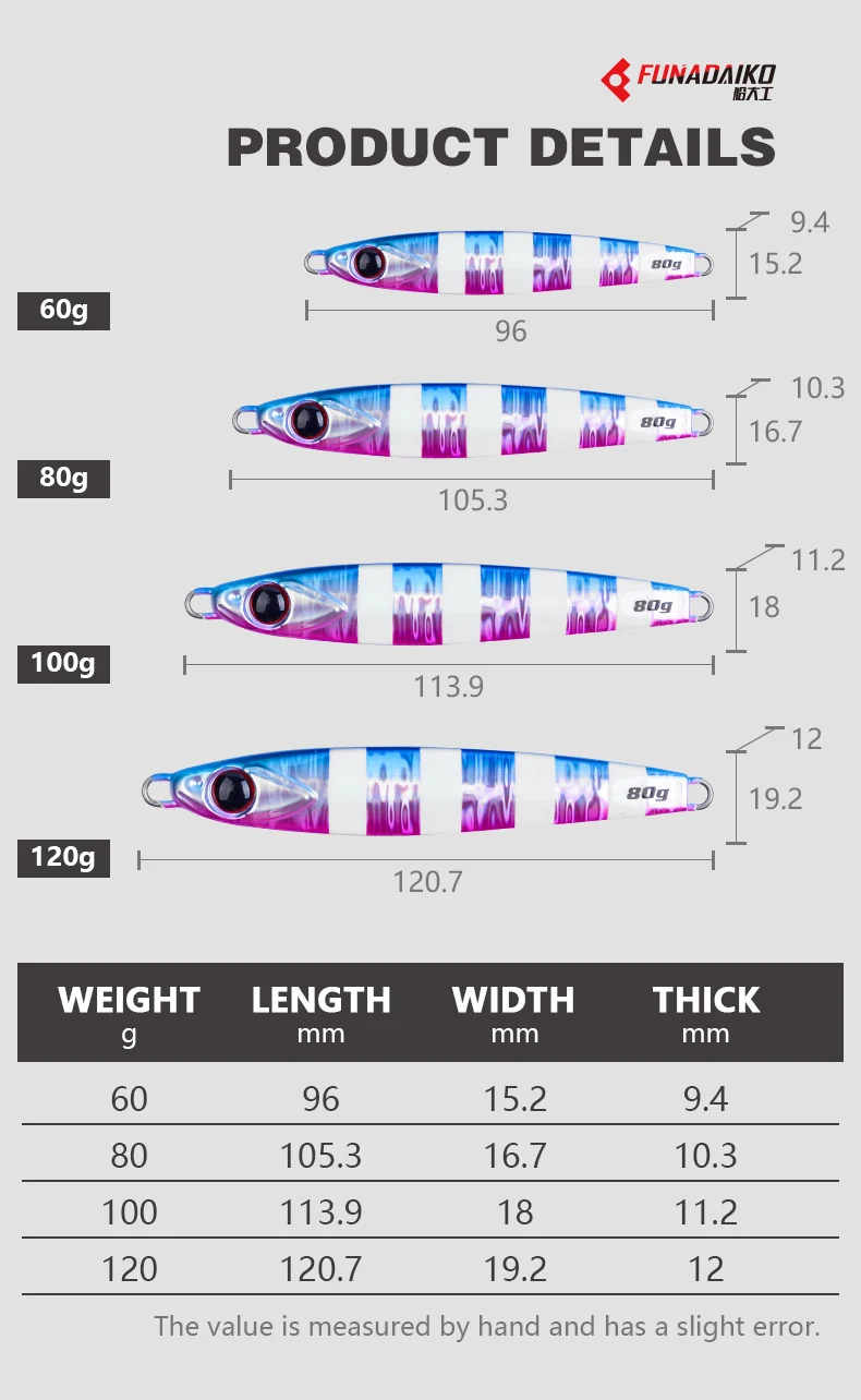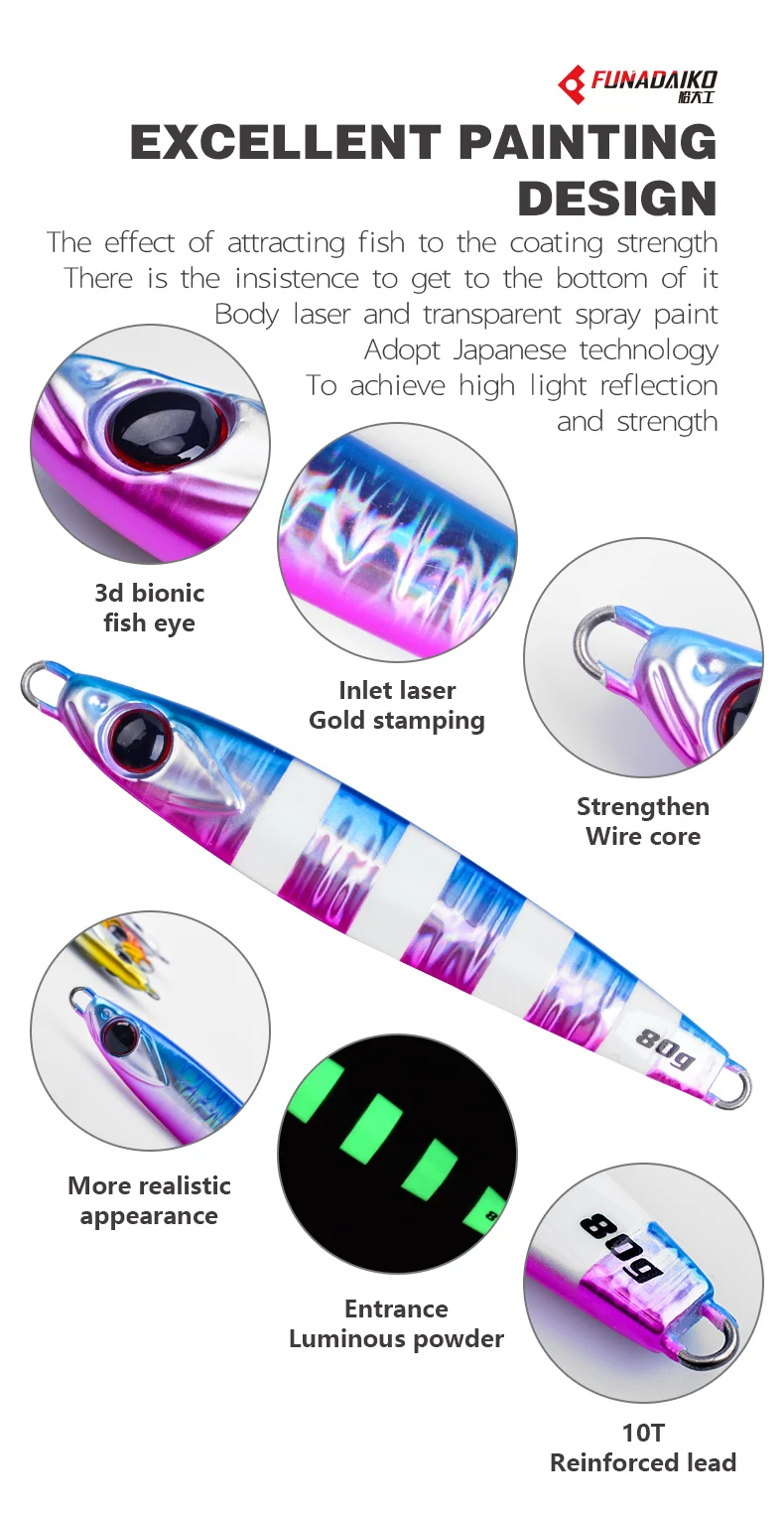 FUNADAIKO Pesca 60g 80g 100g 120g equipo de Pesca plantillas de Metal lento Isca Señuelos de Pesca artificiales