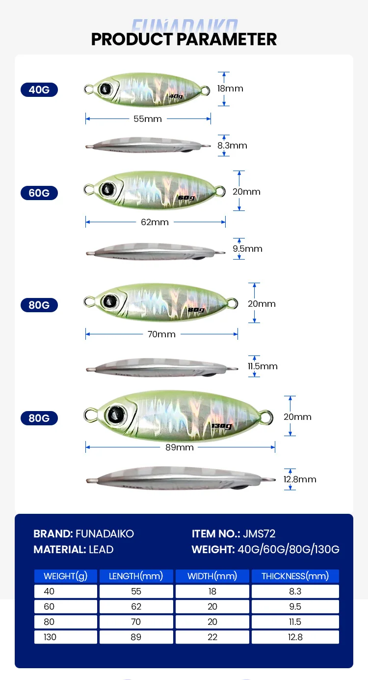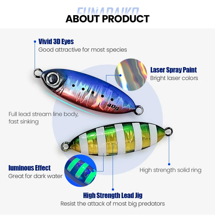 FUNADAIKO-señuelo de Pesca Artificial, cebos de plantilla lenta, 20g, 30g, 40g, 60g, 80g, novedad