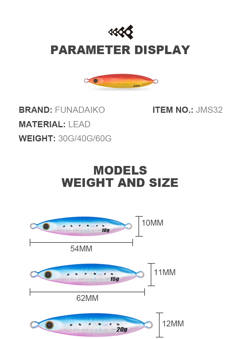 FUNADAIKO-señuelo de pesca jigging isca, anzuelo de Metal Artificial, plantilla lenta, 10g, 20g, 15g