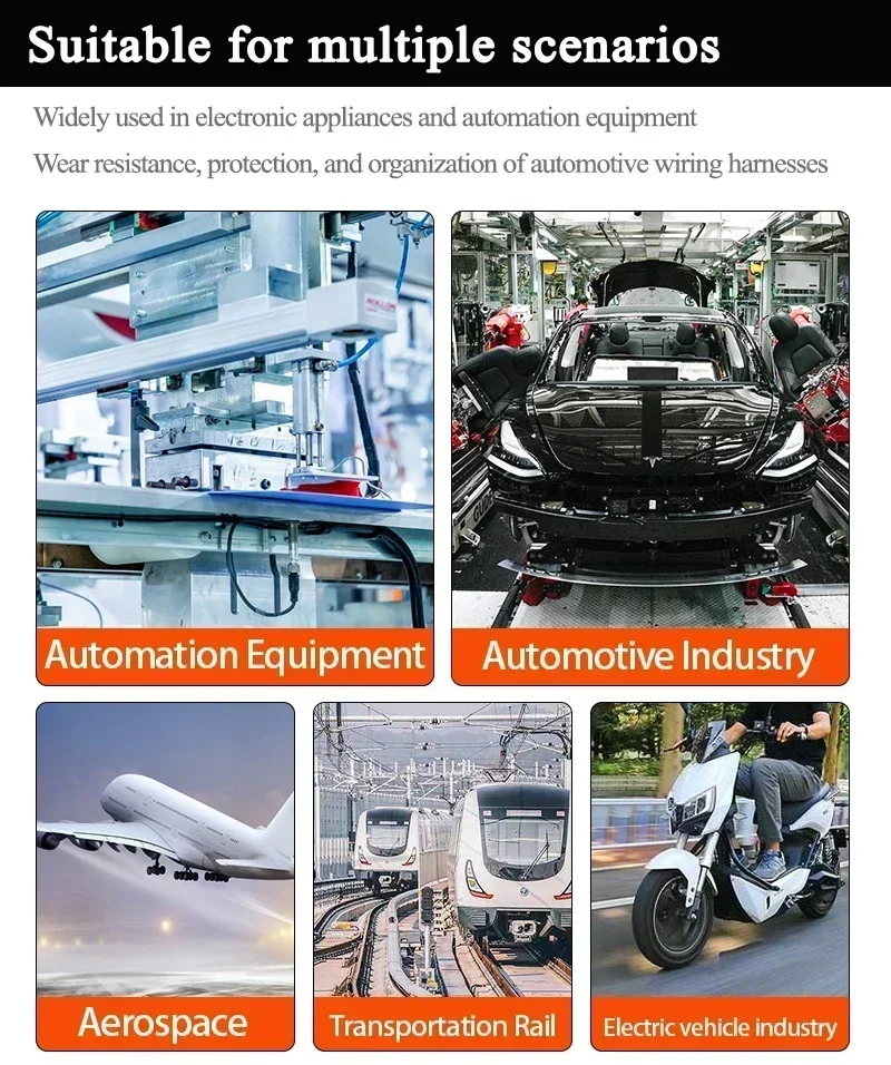 Aplicación: El producto es ampliamente utilizado en electrónica, electrodomésticos, equipos de automatización, automóviles, protección y organización de mazos de cables.