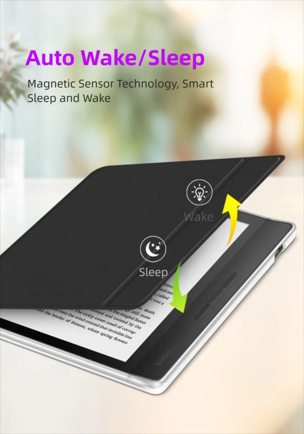 - Auto Wake/Sleep Function: This protective case is equipped with a smart auto wake/sleep function. Simply open the cover to wake your e-reader and close it to put the device to sleep, conserving battery life and providing convenient access to your e-book reader.