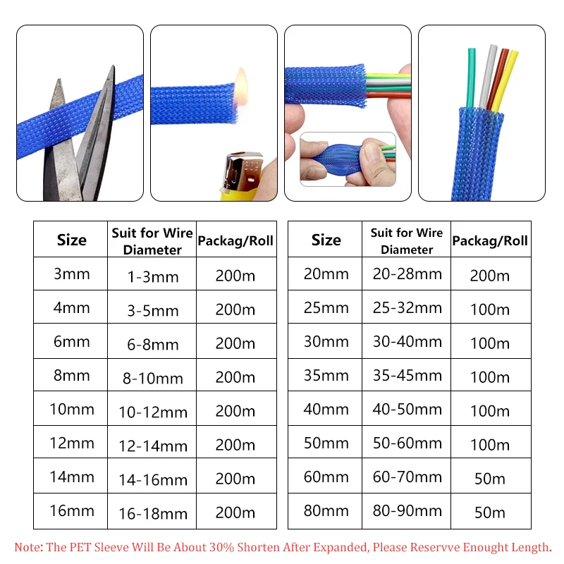 Funda protectora para Cable trenzado PET, negro/azul, 2/4/6/8/10/12/14/16/20/25/30mm, línea aislante expandible de alta densidad, 1-10M