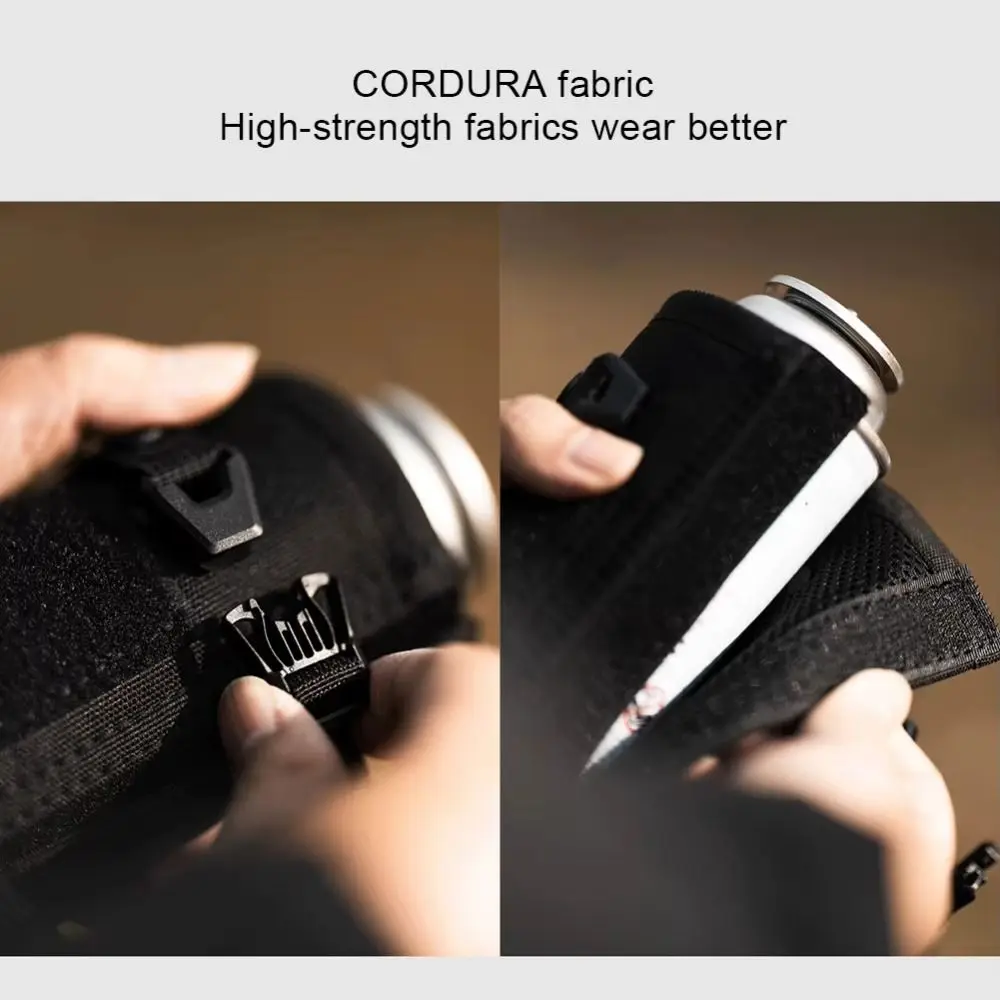1. Durable Material: Made of CORDURAS fabric, this camping gas cylinder cover is highly resistant to wear and tear and water, making it ideal for heavy-duty use and extreme conditions.
