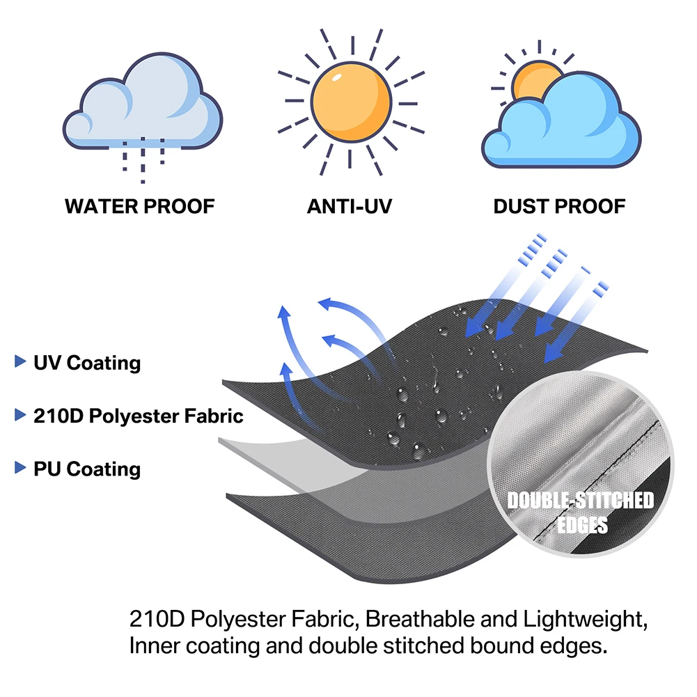 Protección integralA diferencia de otras fundas, nuestra funda puede proteger su silla tipo huevo en todas las direcciones. Puede bloquear eficazmente el pequeño polvo en la funda de la silla de jardín de la terraza y proteger eficazmente el columpio de mimbre de la savia y los excrementos de pájaros, proporcionando así un excelente rendimiento de protección.