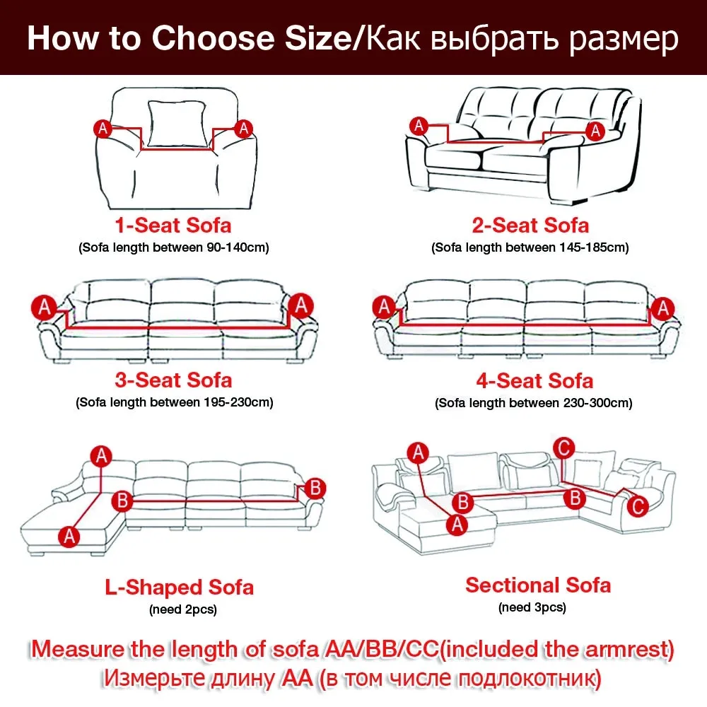 De acuerdo con el estilo y la longitud de su sofá a elegir el tamaño de la cubierta. Si la medida está muy cerca de la longitud máxima, te sugerimos que elijas una talla más grande.