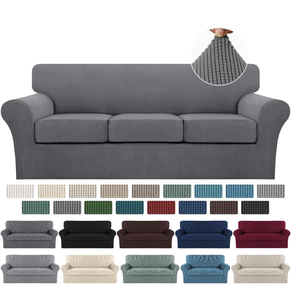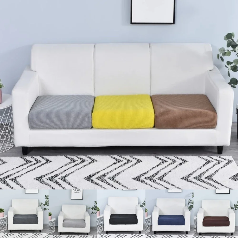 FUNDAS COJÍN INDIVIDUALES:Estas creativas fundas de sofá de 1/2/3 piezas tienen un diseño sofisticado, incluyendo 1 pieza de funda de base y 1/2/3 piezas de cojín individuales. Elaborado a partir de 85% poliéster/15% spandex tejido jacquard grueso con patrón de cuadros pequeños. Esta funda de sofá asegurará una mayor elasticidad y es más duradera que otras fundas normales por su diseño grueso.