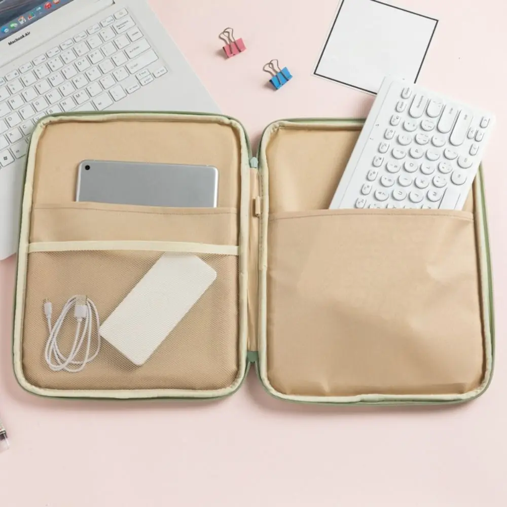 ⭐ ⭐ ⭐ ⭐ ⭐ Bonita y práctica funda para tableta 💻 ✨ ¡Estoy encantado con esta funda para tablet! El diseño de cuadros azules es súper lindo y le da un aspecto agradable, suave y acogedor sin dejar de ser elegante. Se siente bien acolchado y protector, así que me siento seguro llevando mi tableta sin preocuparme por rayones o golpes. En el interior, la funda está muy bien organizada: hay diferentes compartimentos y bolsillos de malla en los que caben accesorios como teclado, mouse, bolígrafo e incluso pequeños extras como joyas o cables. Todo permanece perfectamente en su lugar y es muy conveniente para mantener todo junto cuando estoy de viaje.
