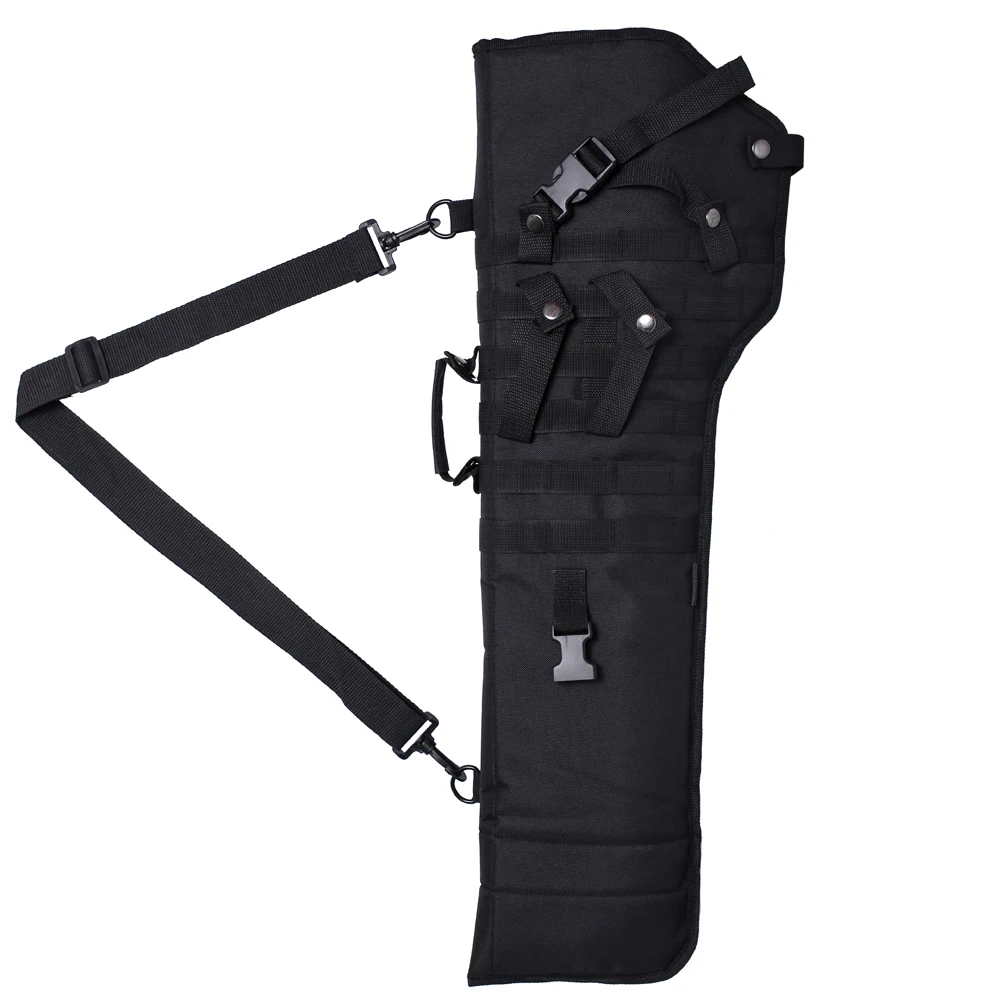 4 Removable retention strap with quick-release buckle. Padding around the whole scabbard to protect your rifle.